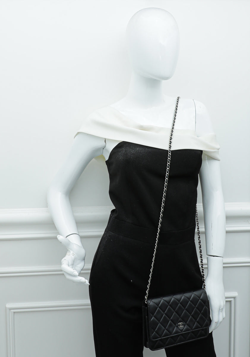 محفظة شانيل الأسود الكلاسيكي على السلسلة