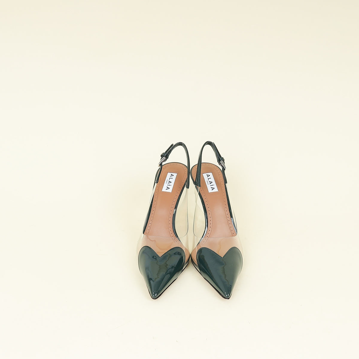 Alaia Dark Green Vert Bouteille Le Cœur Slingback Pumps 38