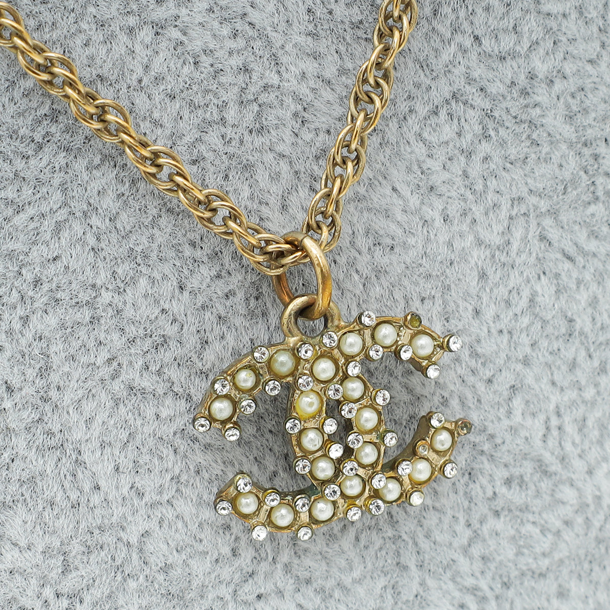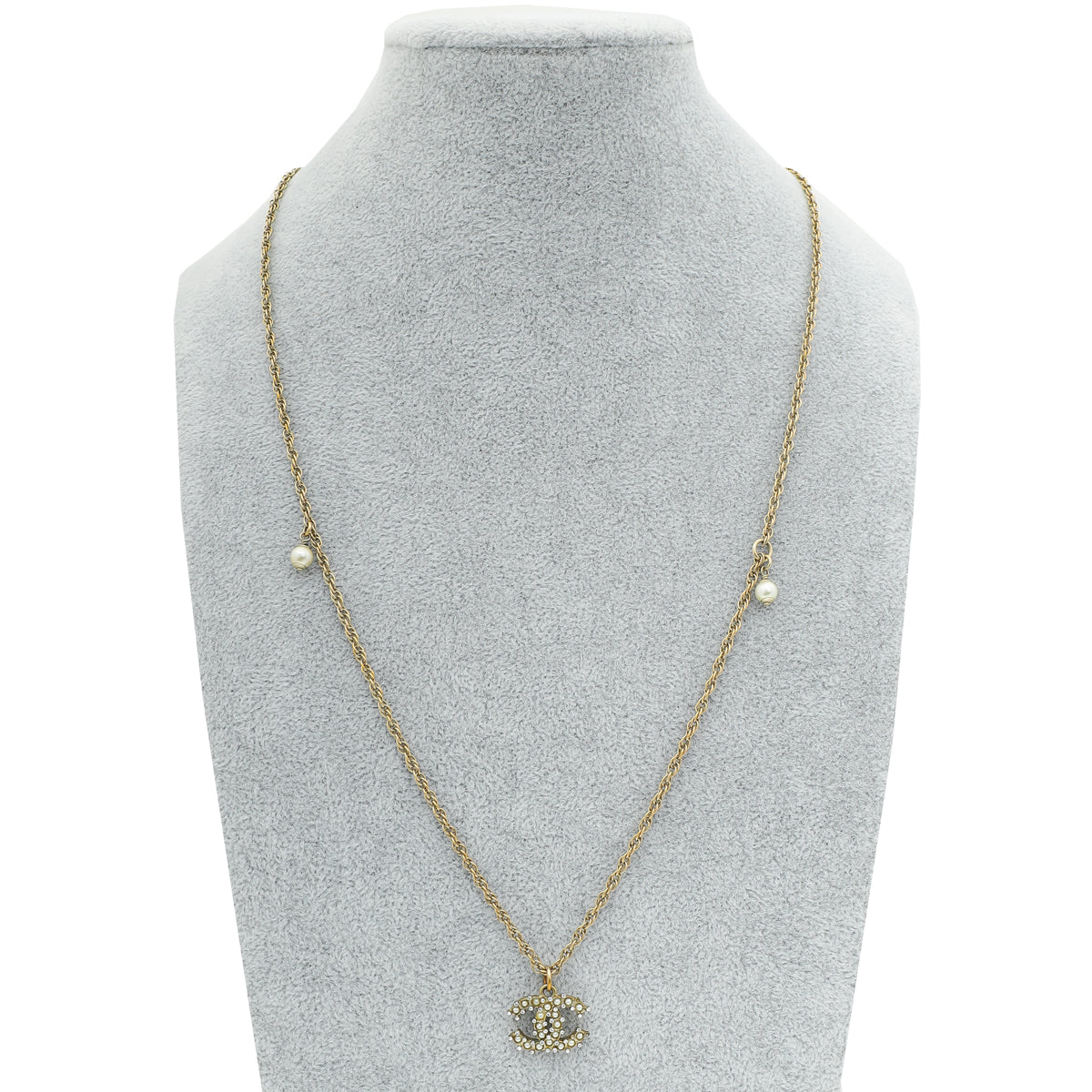 Chanel Aged Gold CC Pearl Crystal Necklace