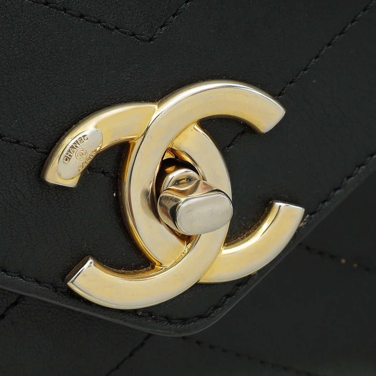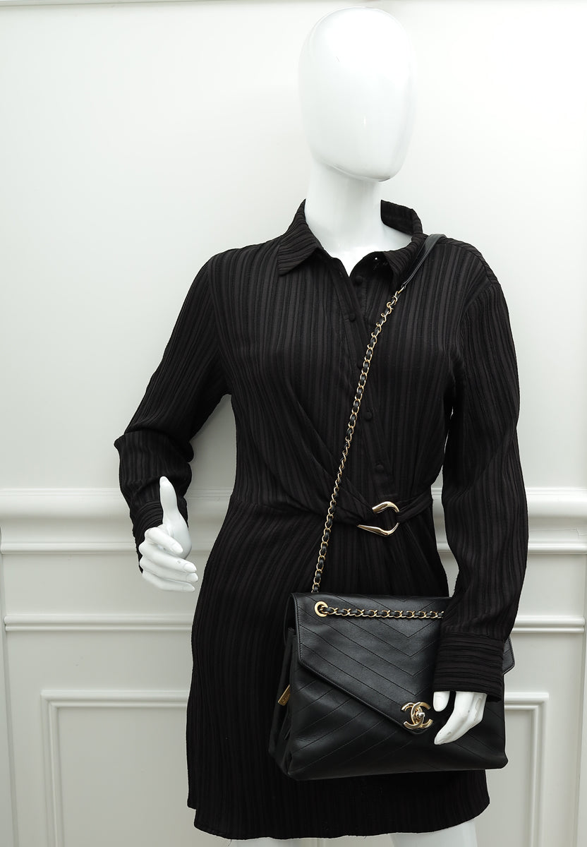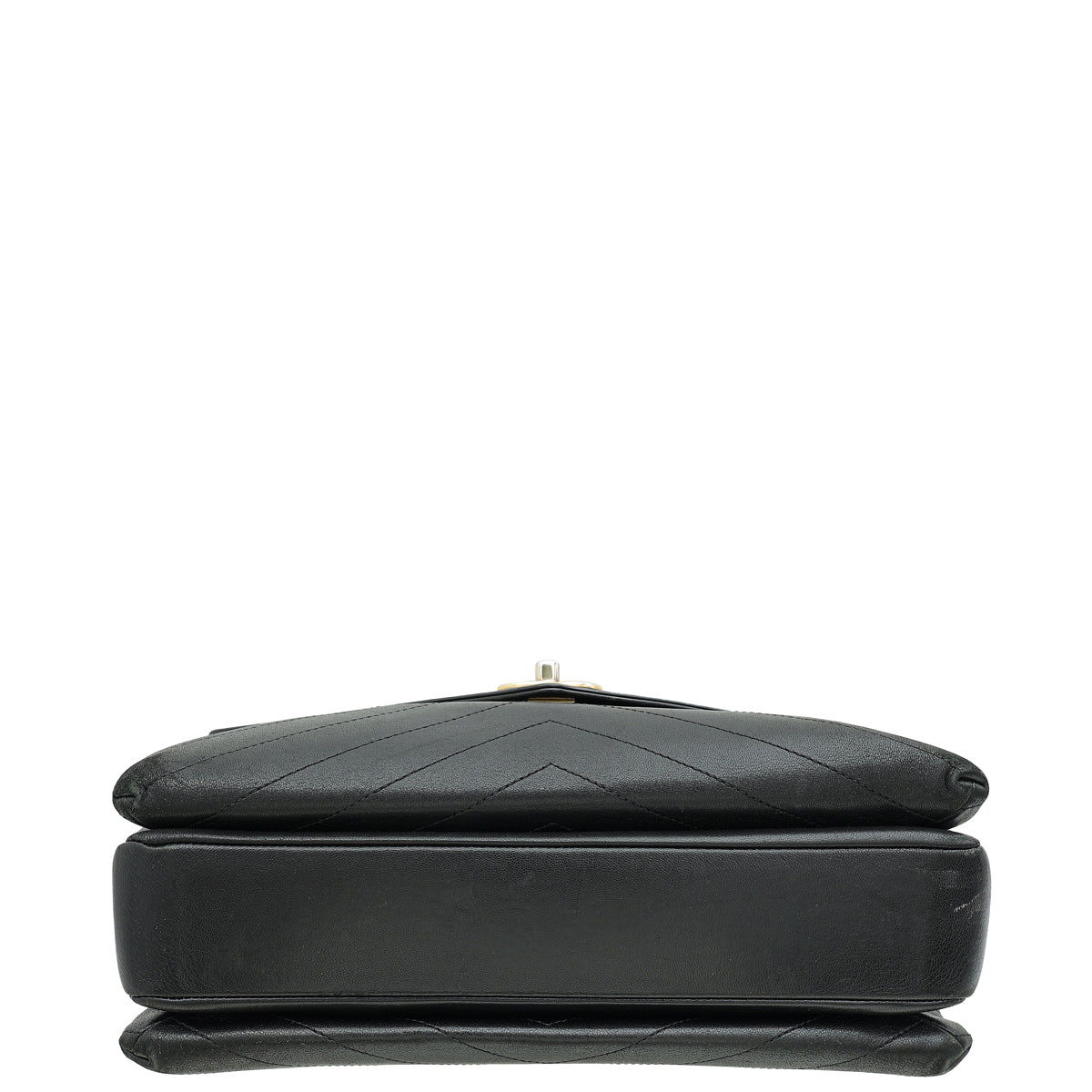 Chanel Black CC Chevron Stitched Large Envelope Flap Bag