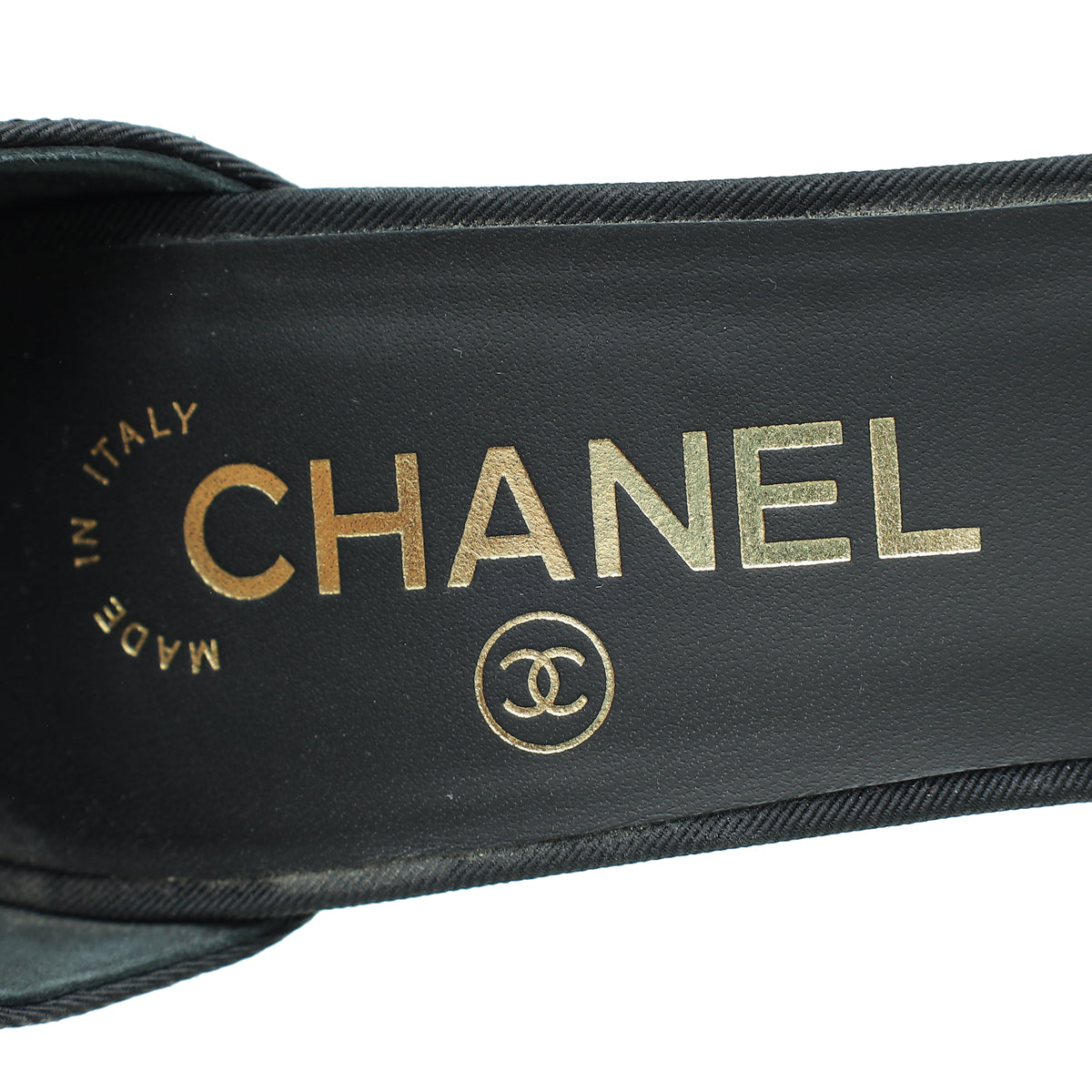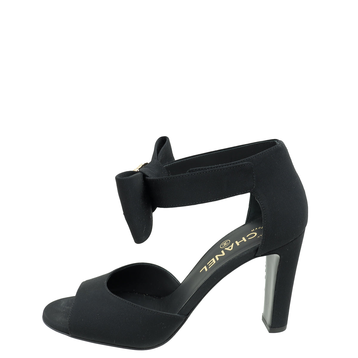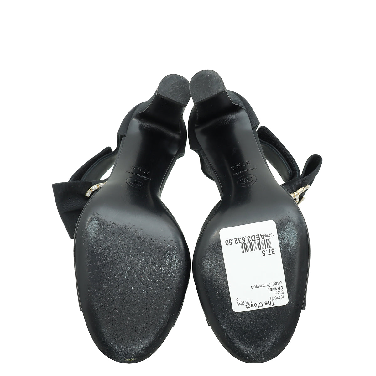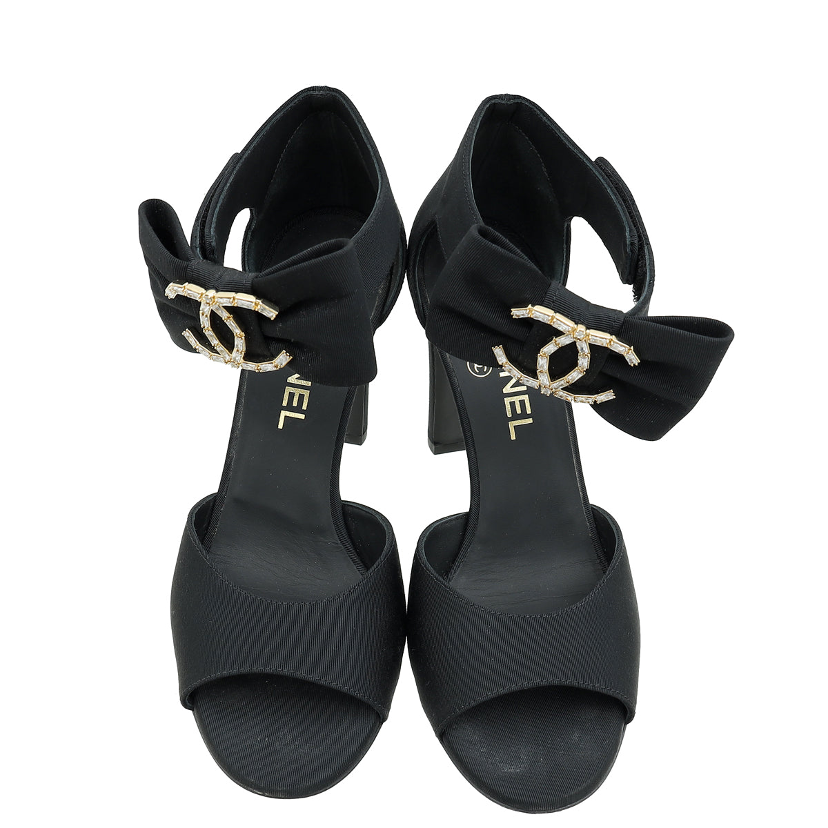 Chanel Black CC Crystal Bow Ankle Sandal 37.5
