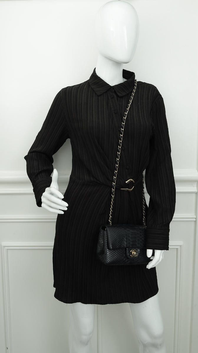 Chanel Black Classic Python Mini Rectangular Flap Bag
