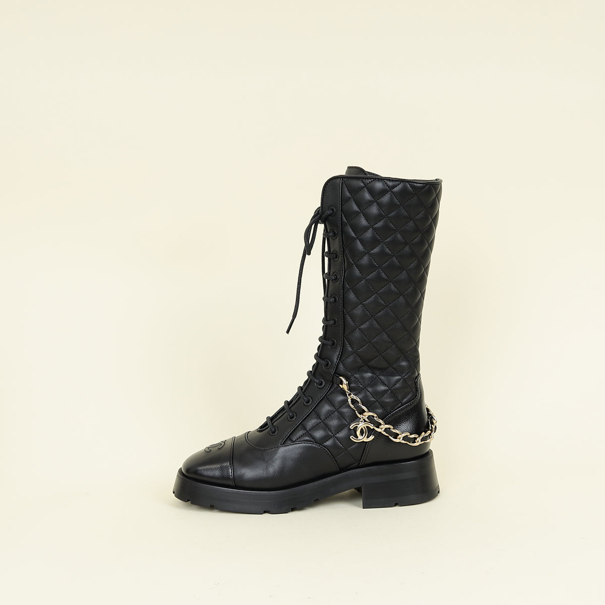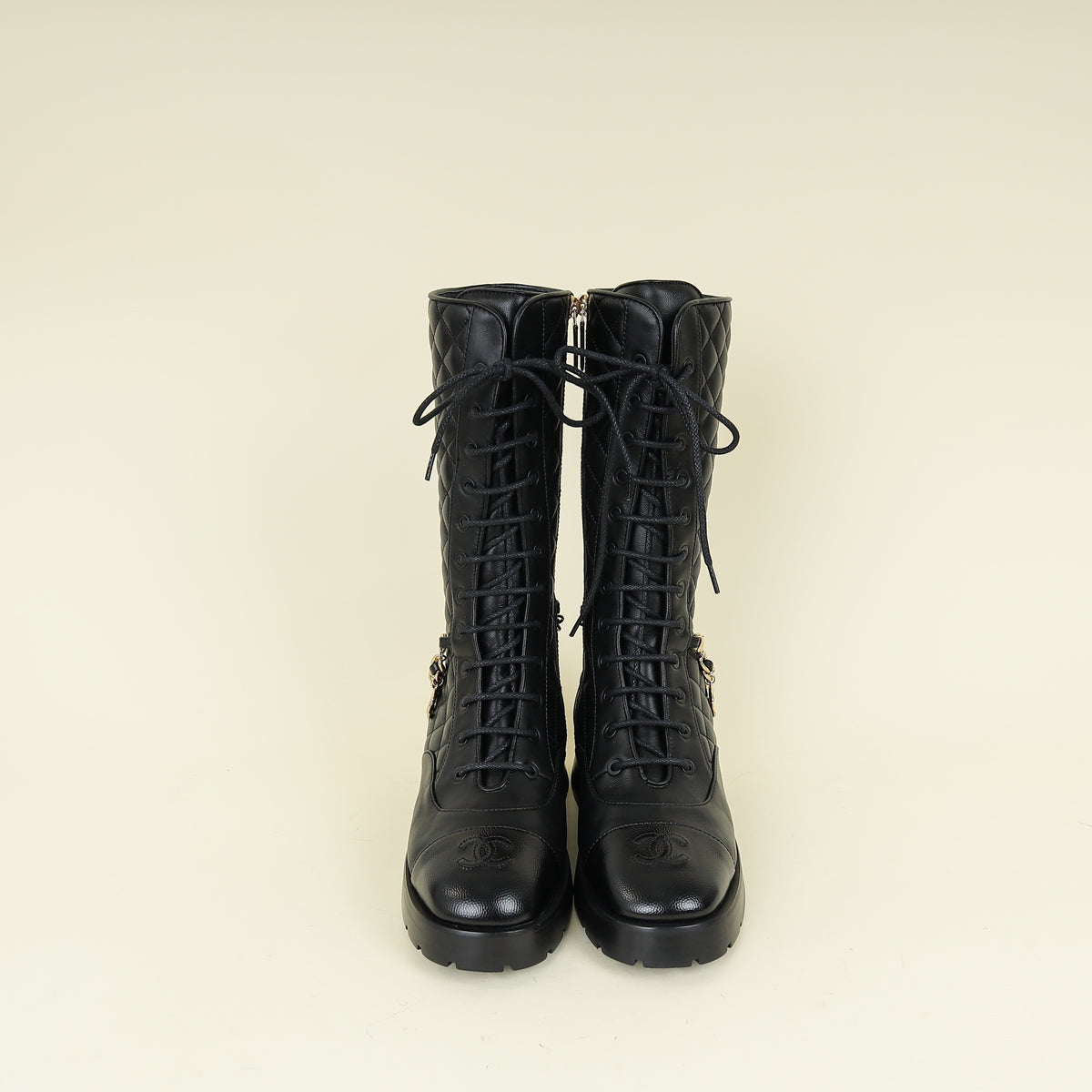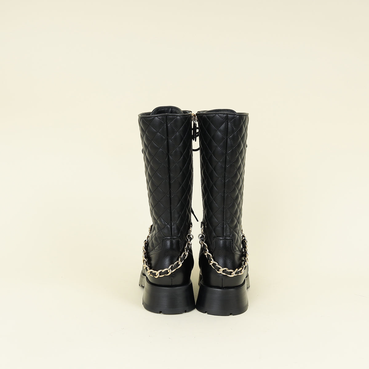 Chanel Black Mid-Calf Boots w/Chain CC Detail 37.5