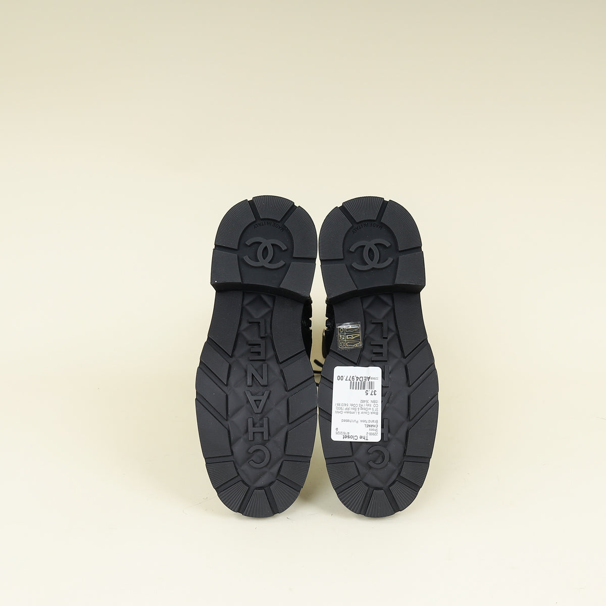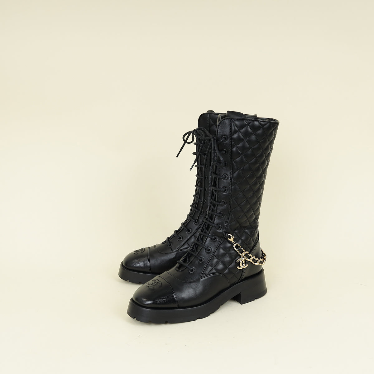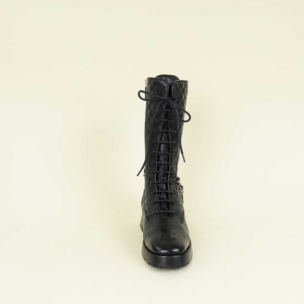 Chanel Black Mid-Calf Boots w/Chain CC Detail 37.5