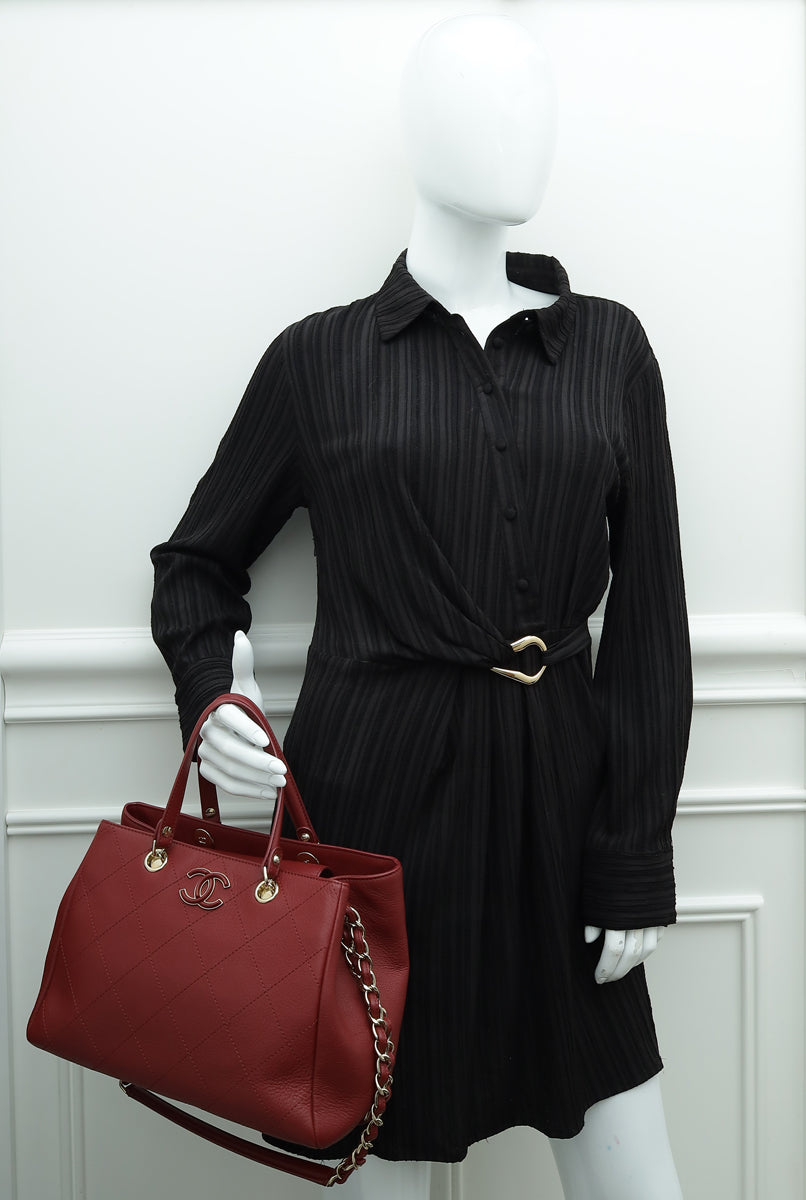 Chanel Burgundy CC Bullskin Shopping Tote Bag-Chanel-THE CLOSET