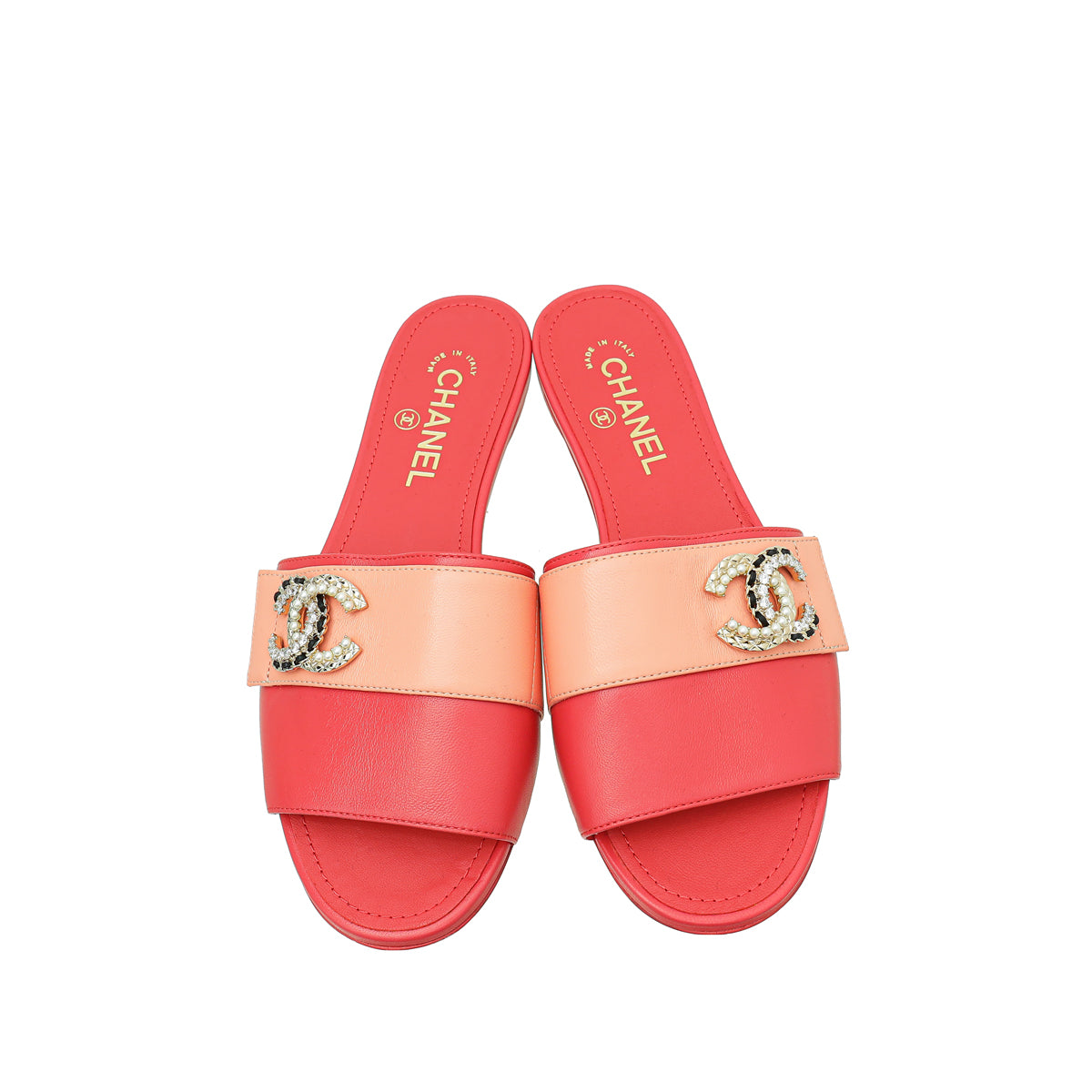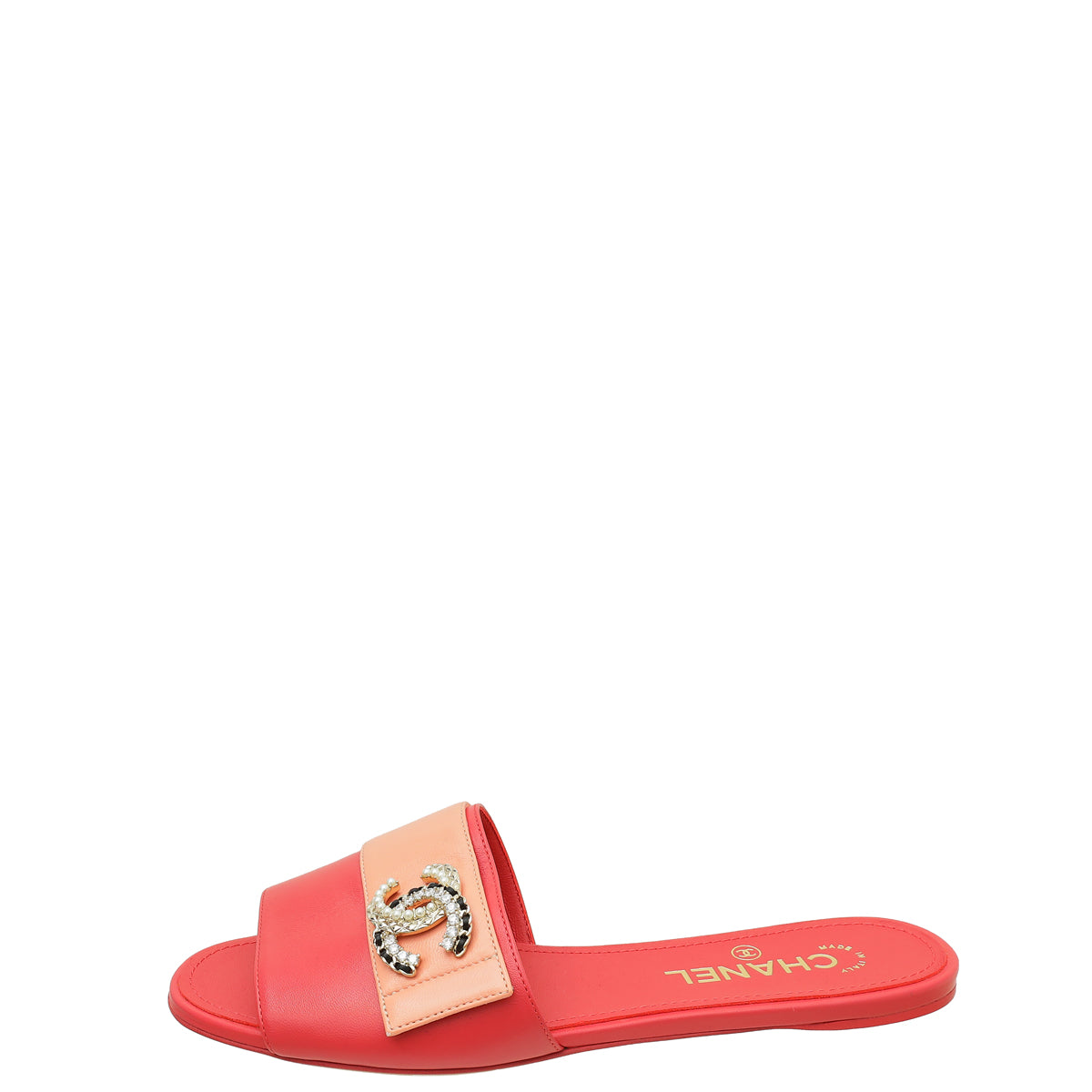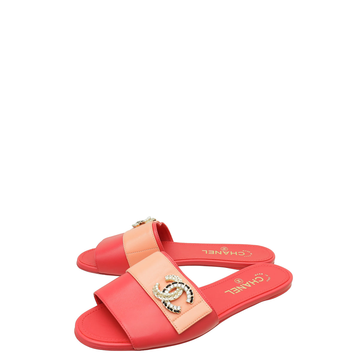 Chanel Bicolor CC Crystal Slide Mules 38.5