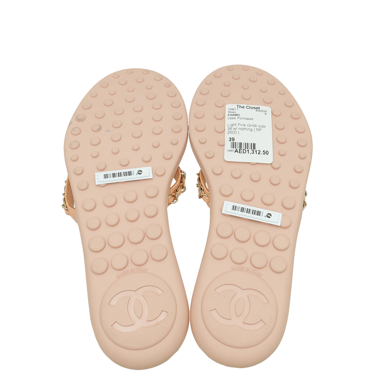 شبشب شانيل CC تيري من القماش باللون الوردي الفاتح 39