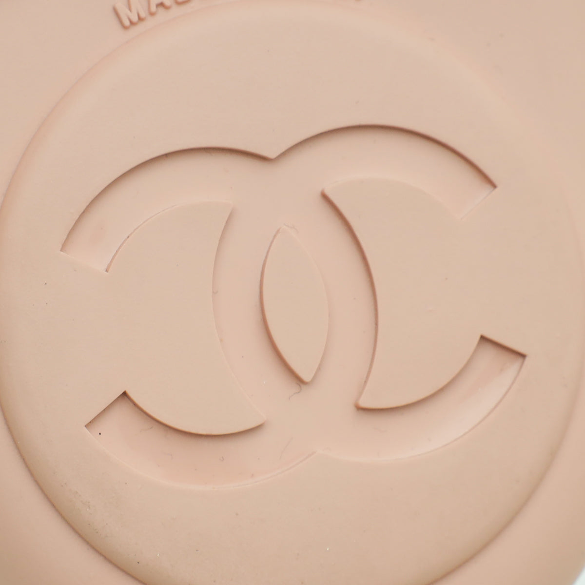 الخامة : قماش تيري وردي فاتح مع زخرفة جلدية وشعار CC