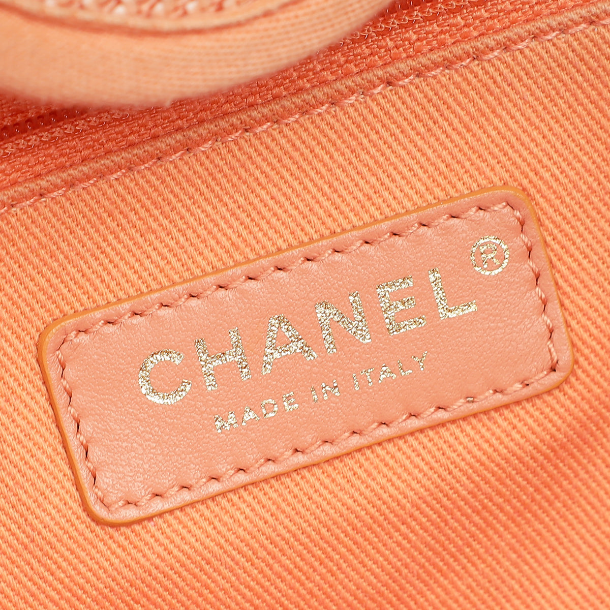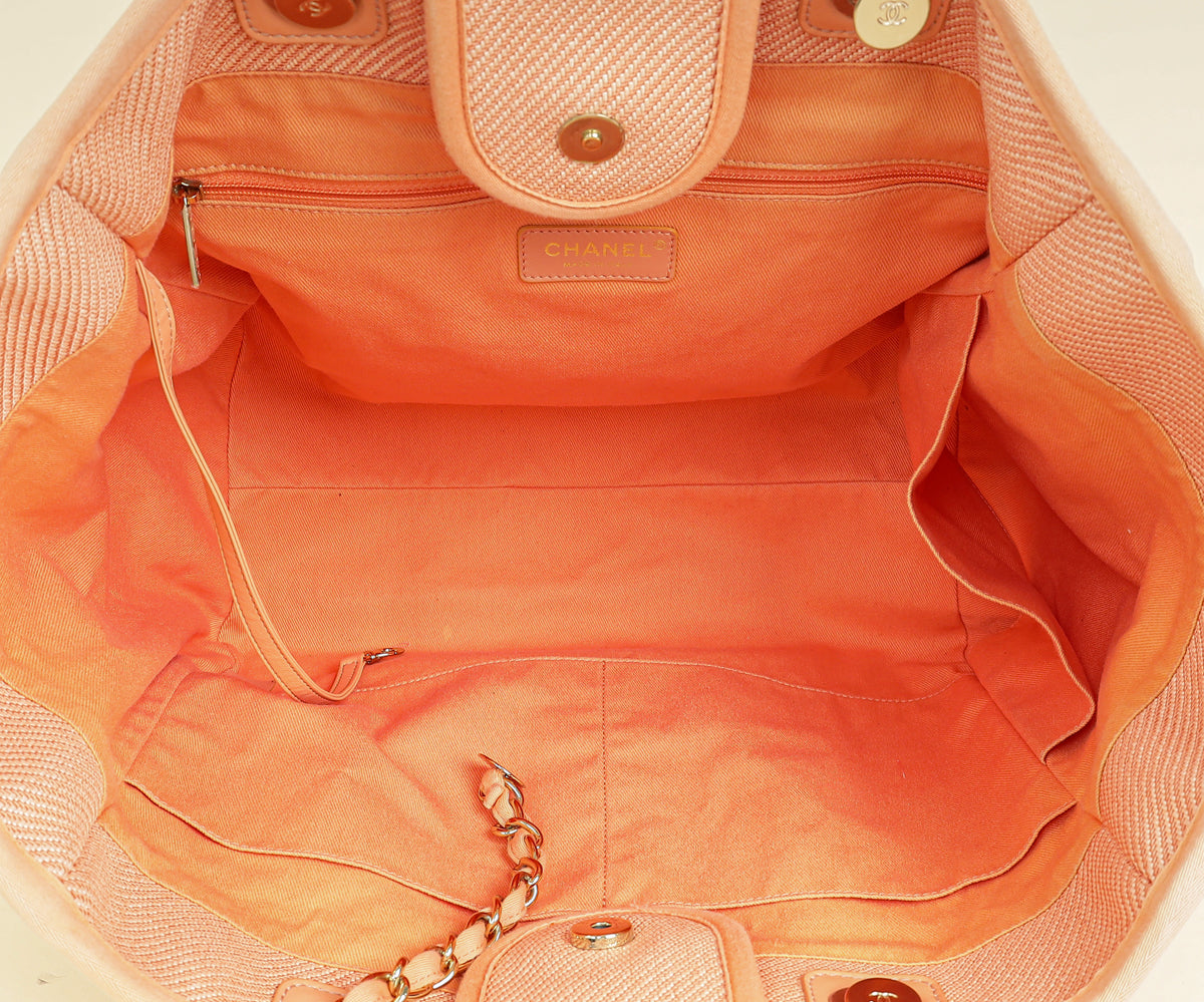 Chanel Peach CC Deauville Mixed Fiber Shopping Bag