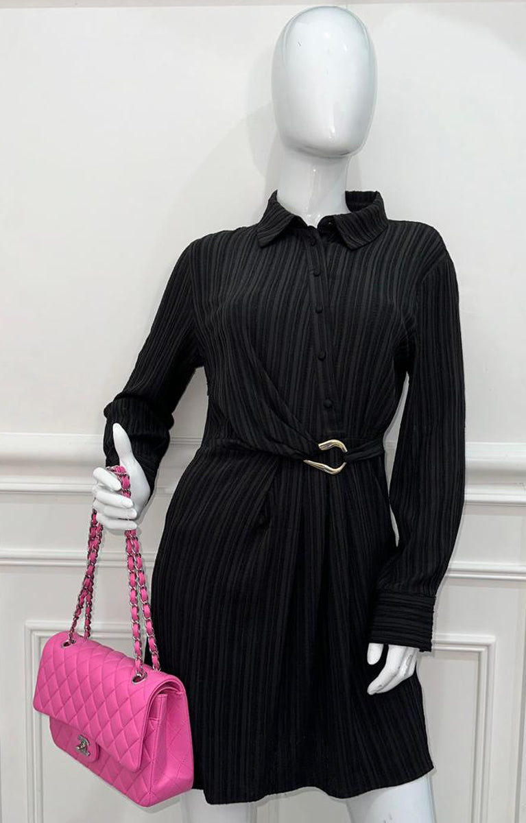 حقيبة شانيل بينك سي كلاسيك 11.12 متوسطة الحجم ذات رفرف مزدوج