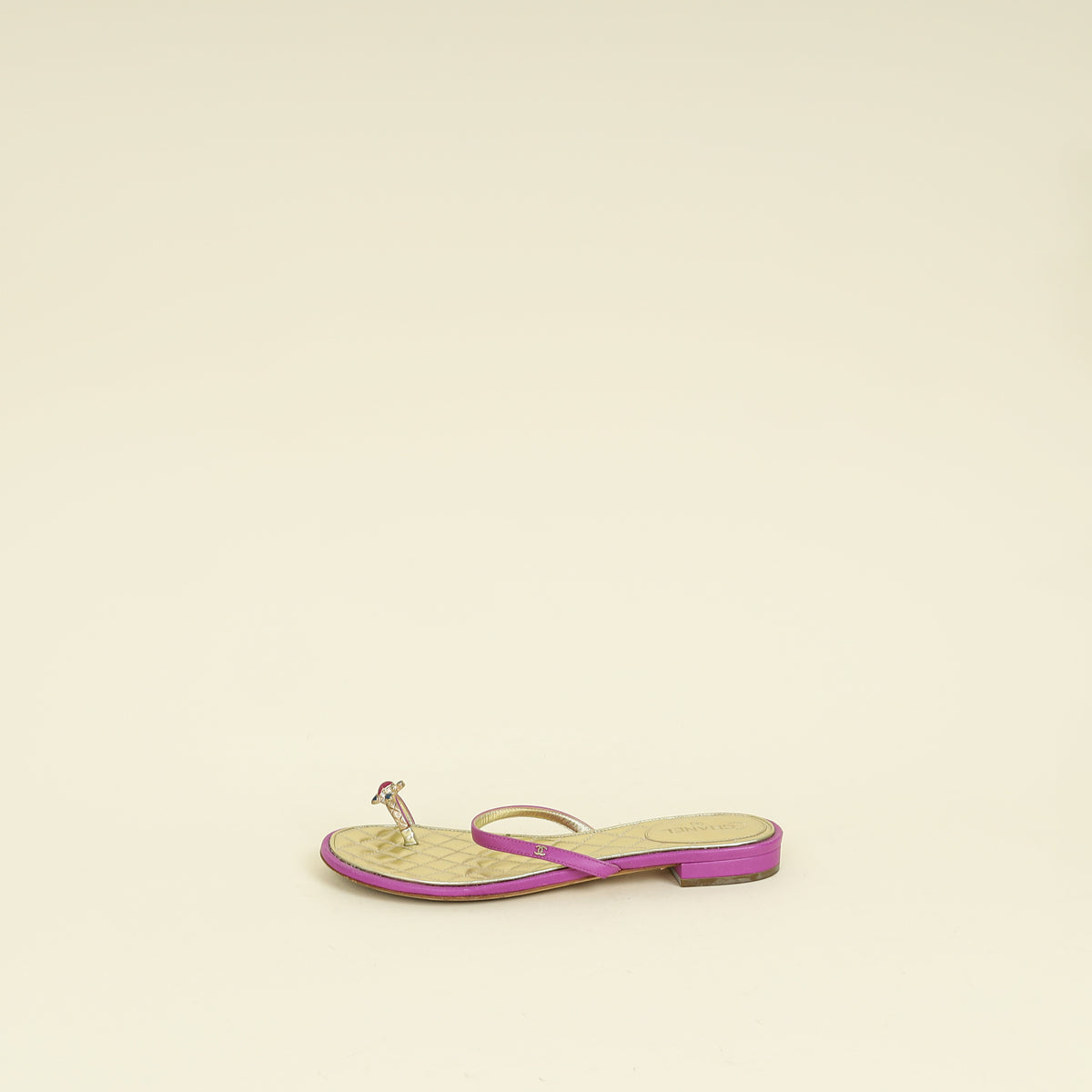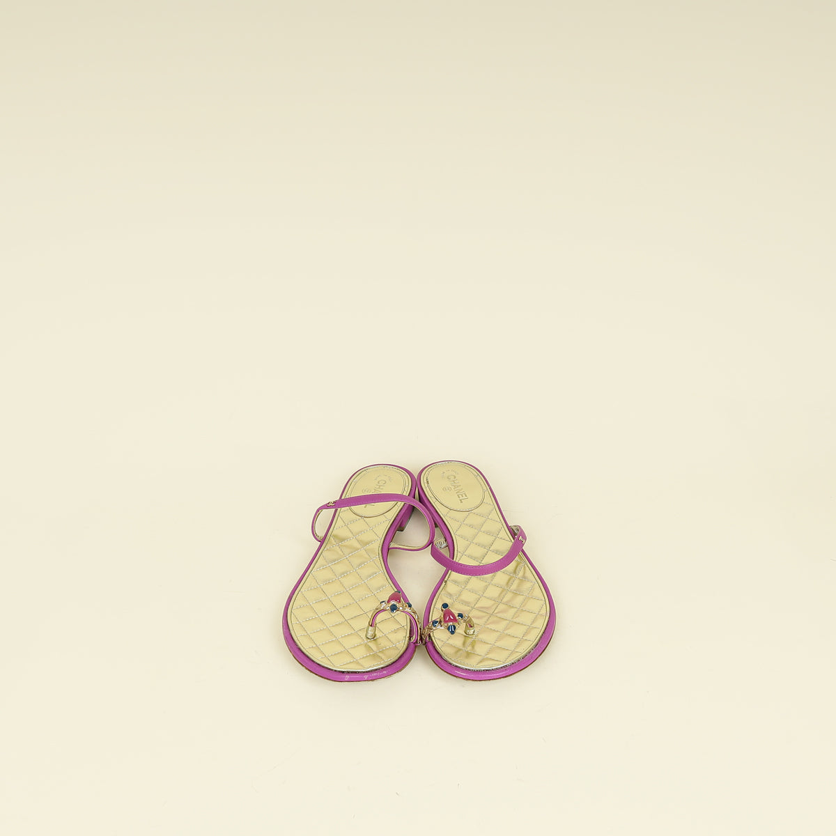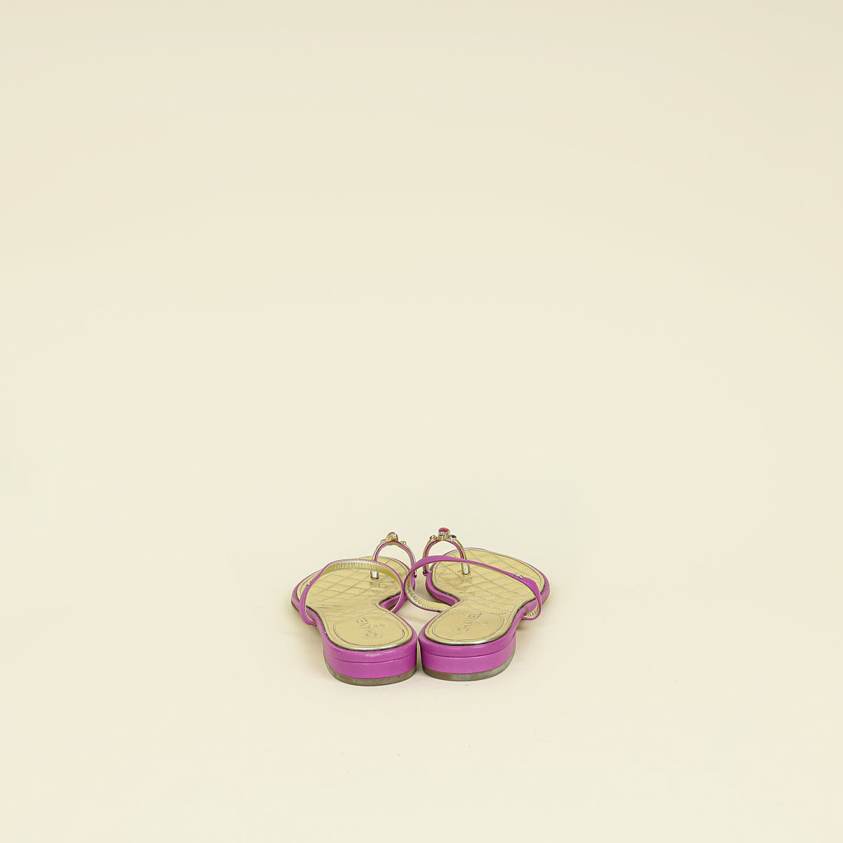 Chanel Purple CC Jeweled Toe Ring Flat Sandal 38