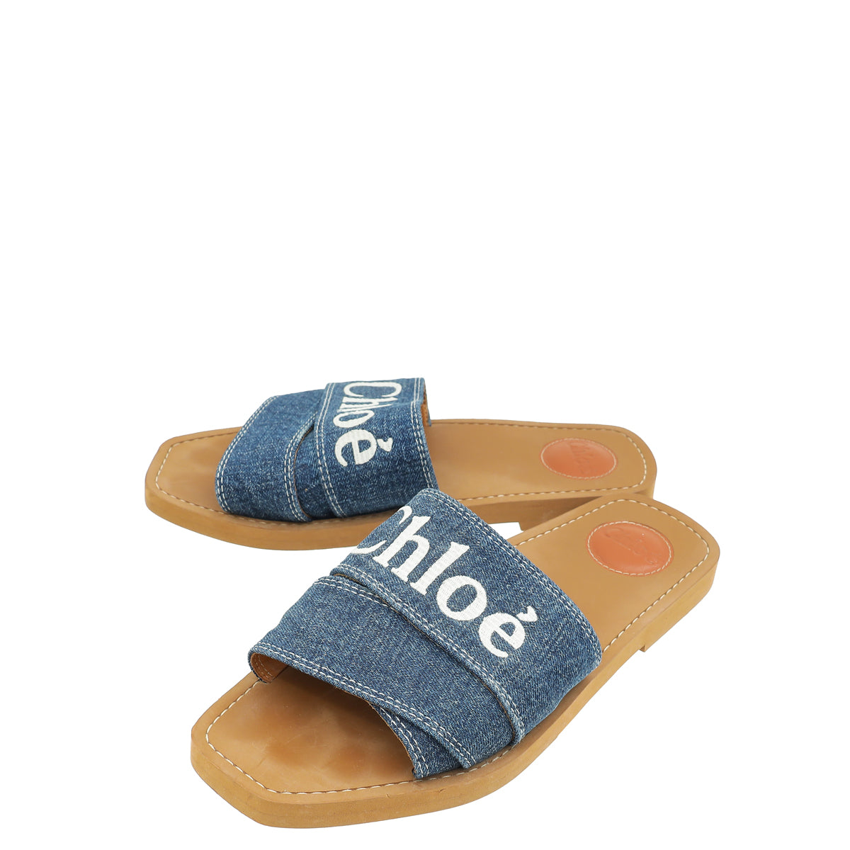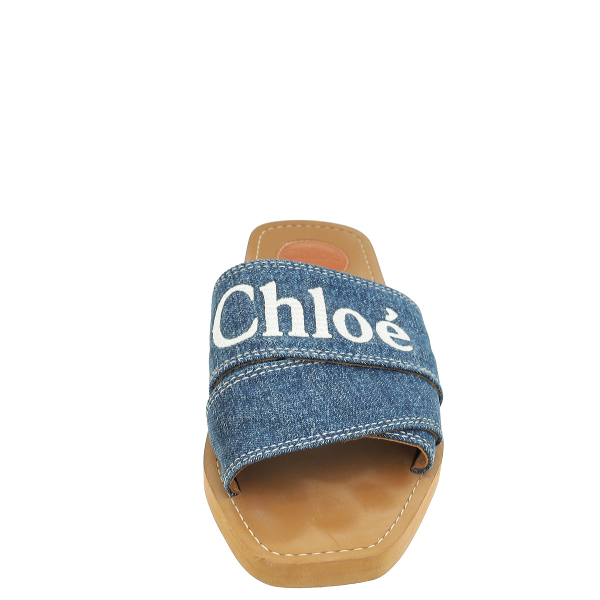 Chloe Blue Woody Logo Denim Slide Sandal 39-Chloe-THE CLOSET