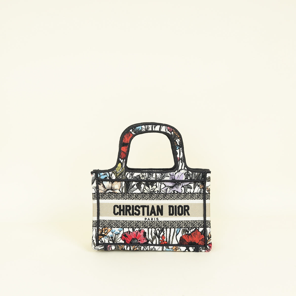 Christian Dior Multicolor Mille Fleurs Embroidery Mini Book Tote Bag W/ UP Initial