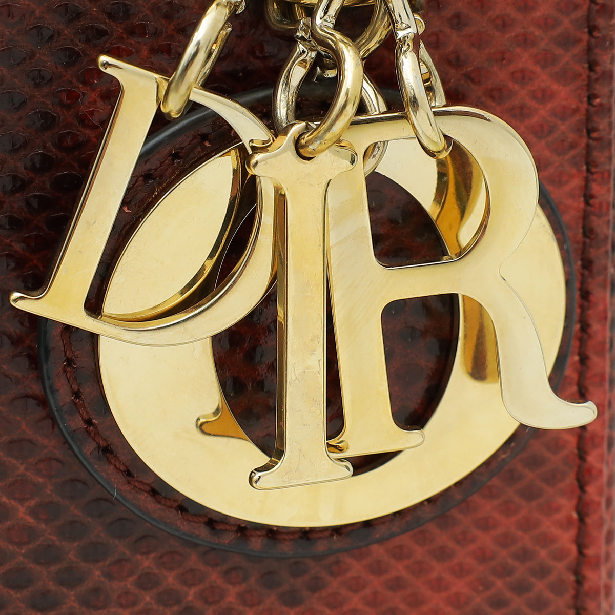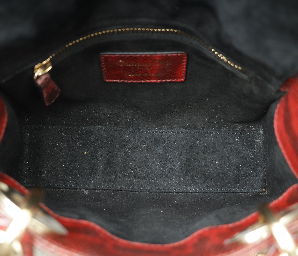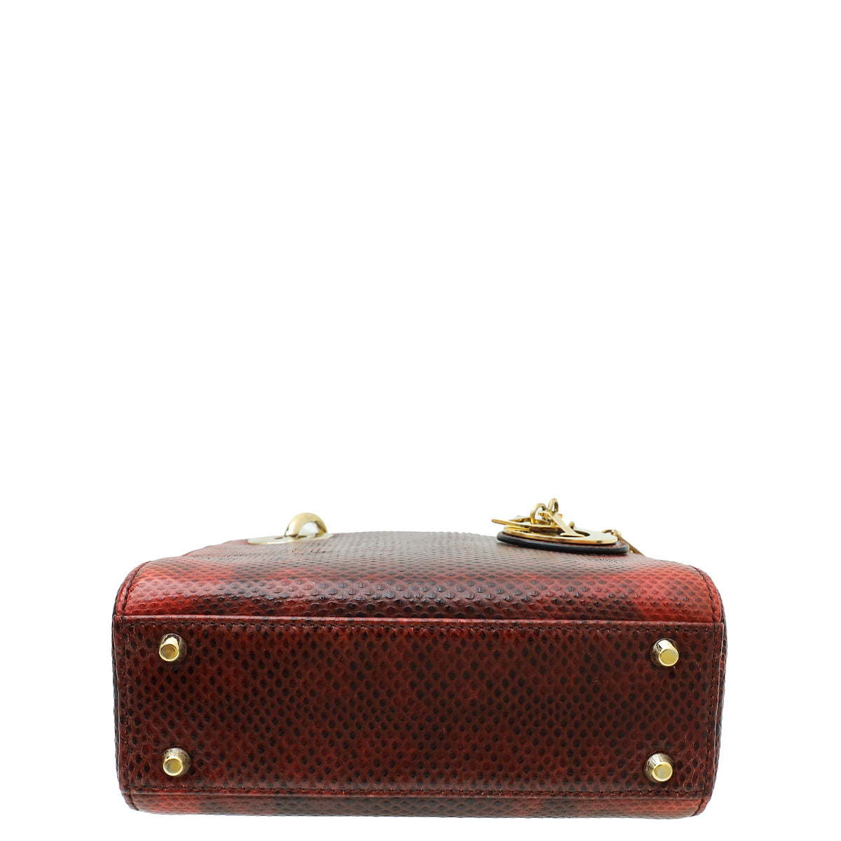 حقيبة كريستيان ديور سحلية حمراء بورجوندي صغيرة ليدي ديور