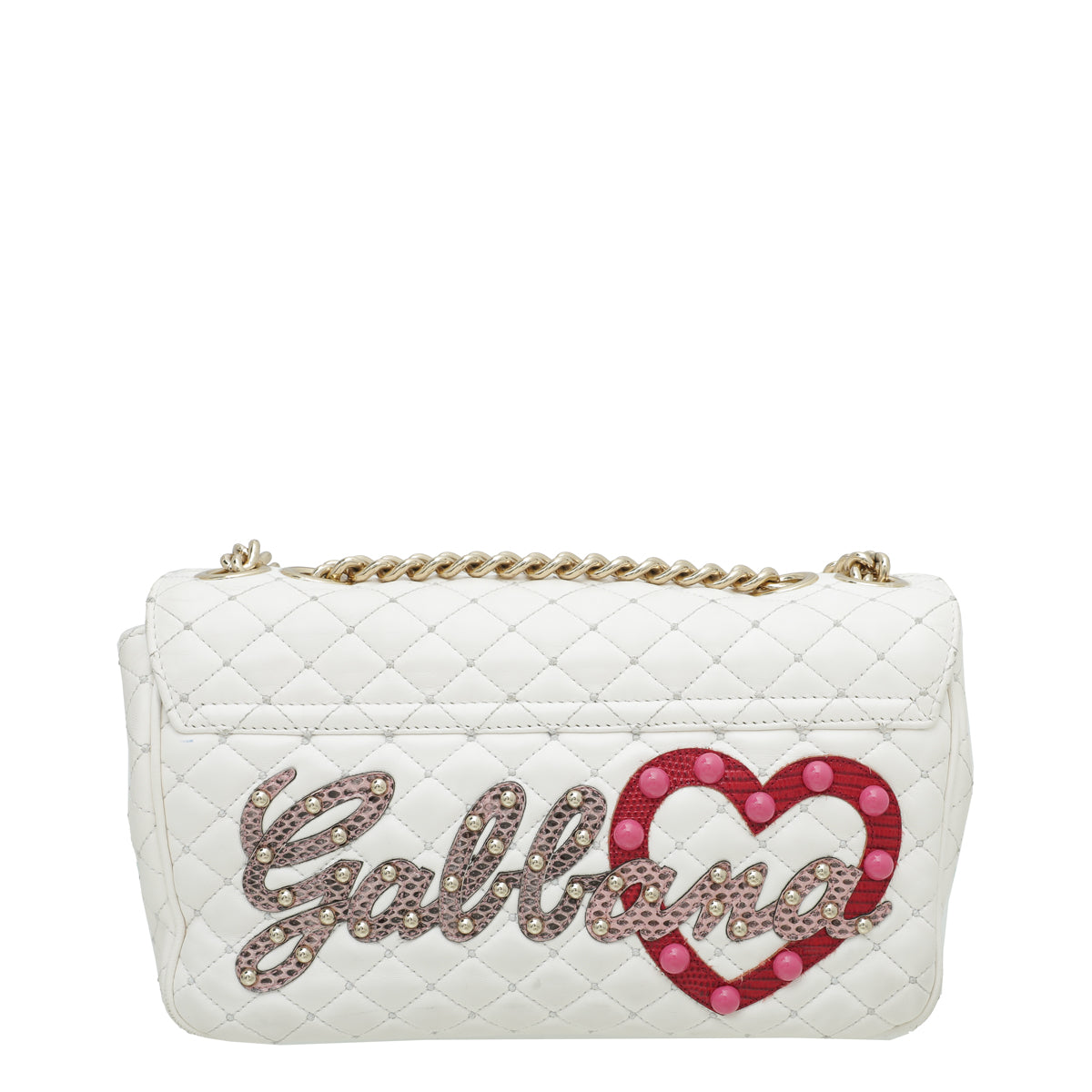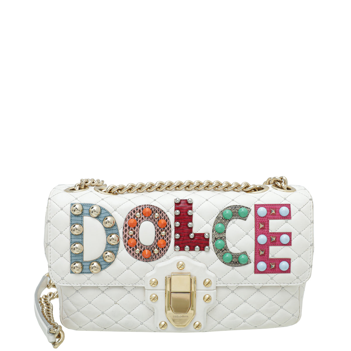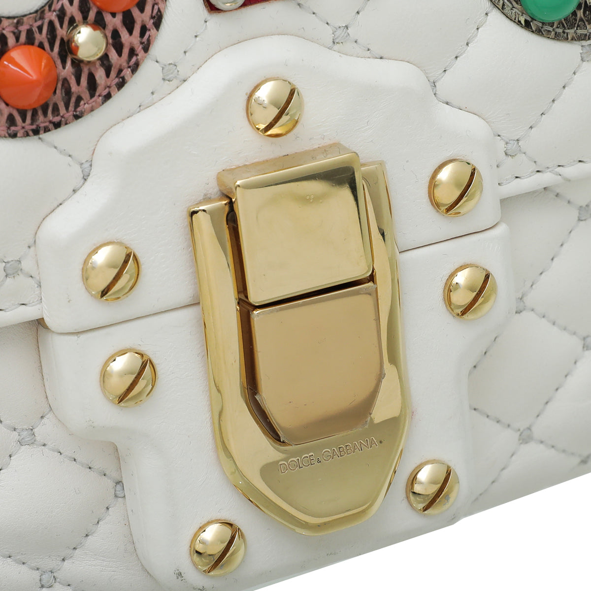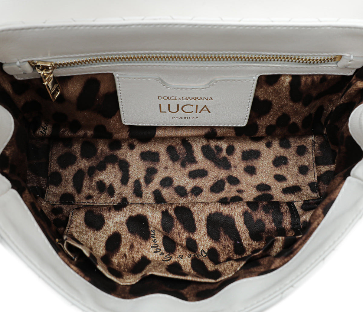 دولتشي آند غابانا وايت لوسيا الأزرار المبطنة كيس متوسطة