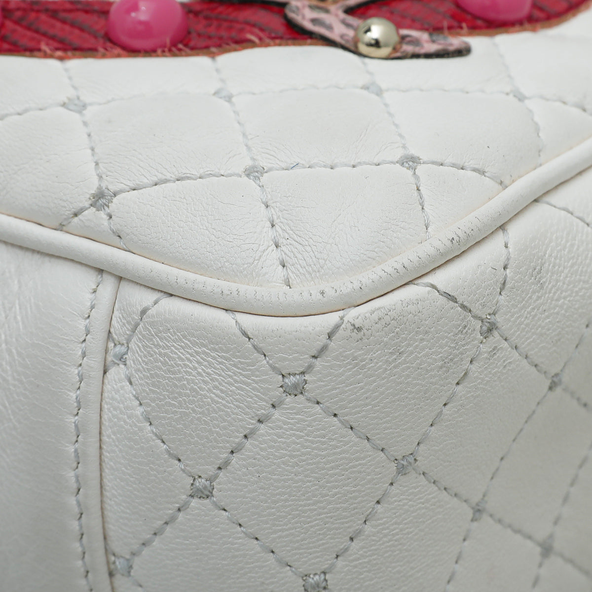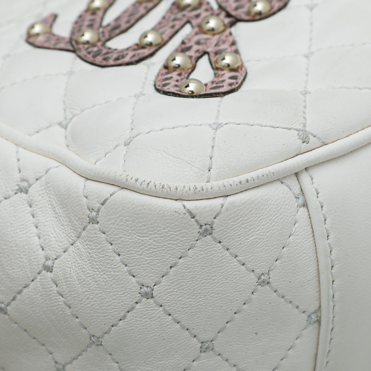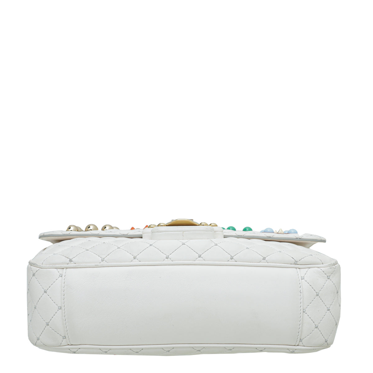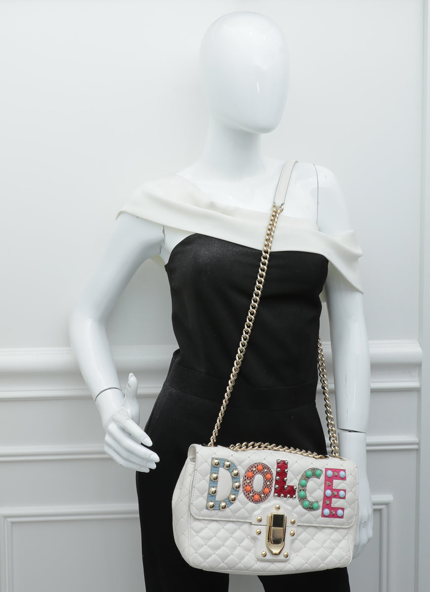 دولتشي آند غابانا وايت لوسيا الأزرار المبطنة كيس متوسطة