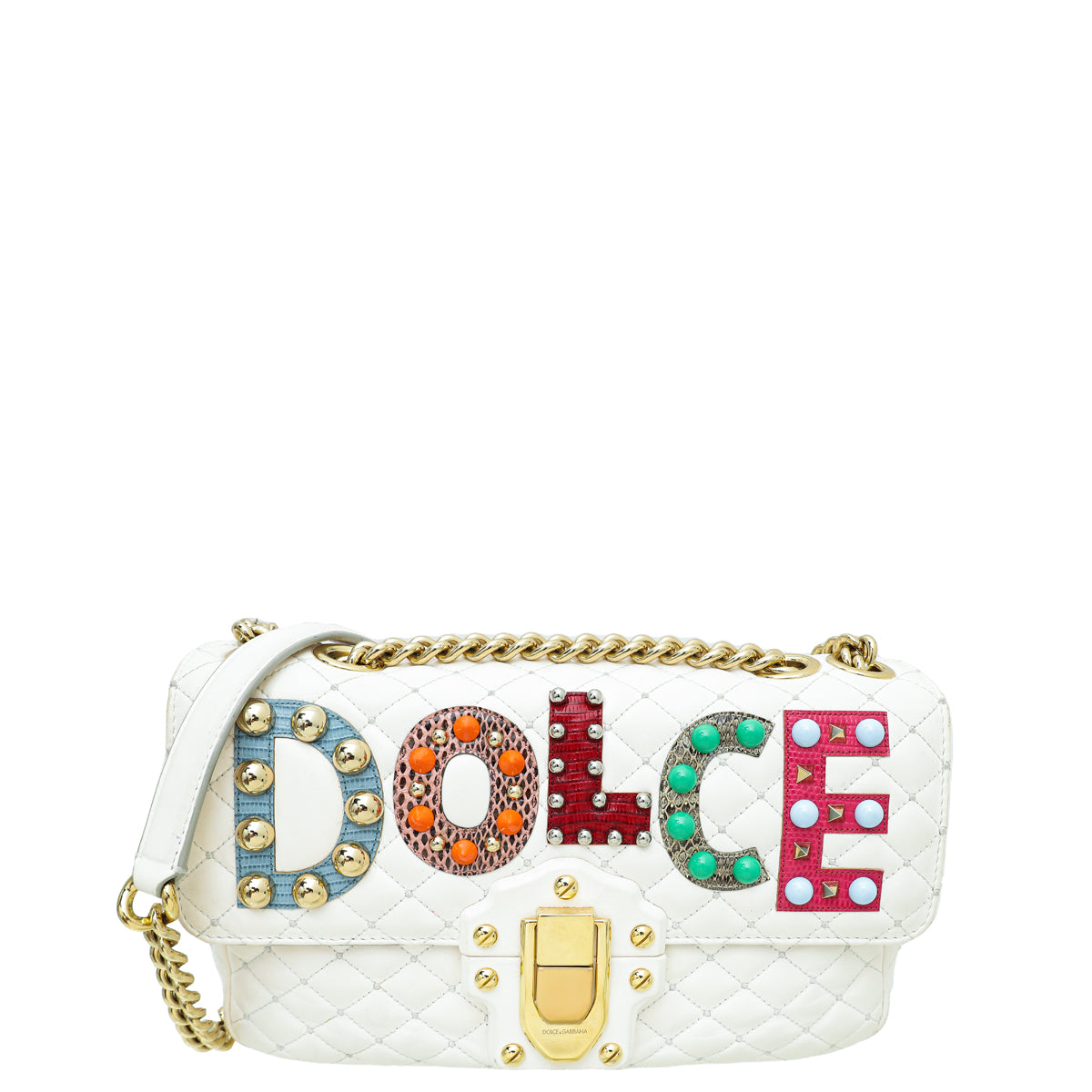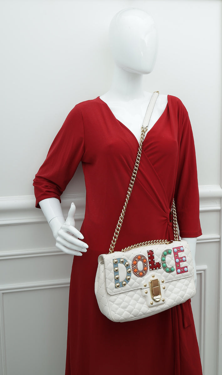Dolce & Gabbana White Multicolor مرصعة "Dolce" Lucia Bag