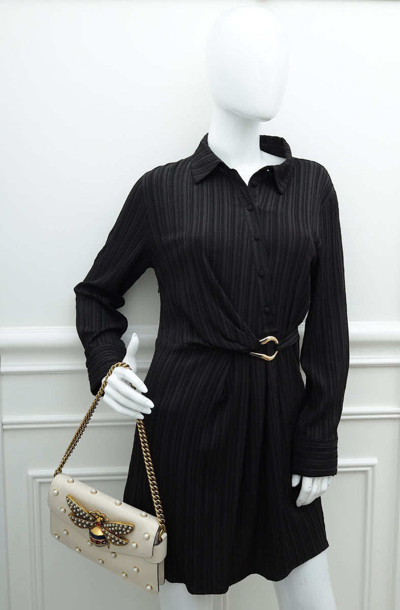 حقيبة كتف غوتشي كريم ميني مرصعة باللؤلؤ مارغريت برودواي
