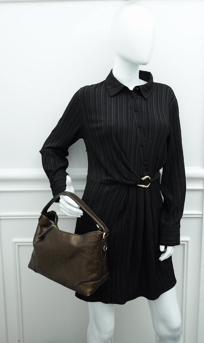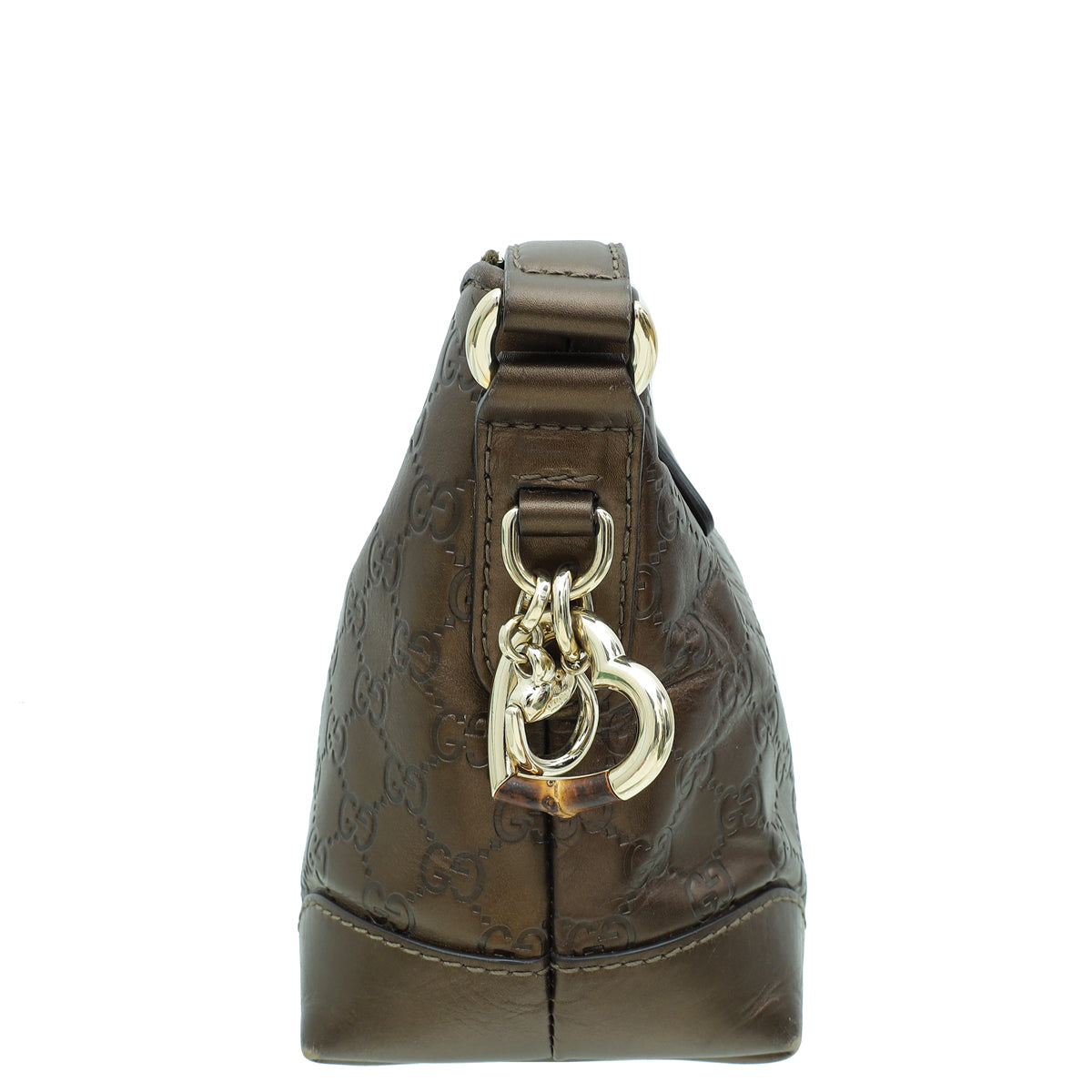 Gucci Metallic Bronze Guccissima Heart-Bit Charm Hobo Bag