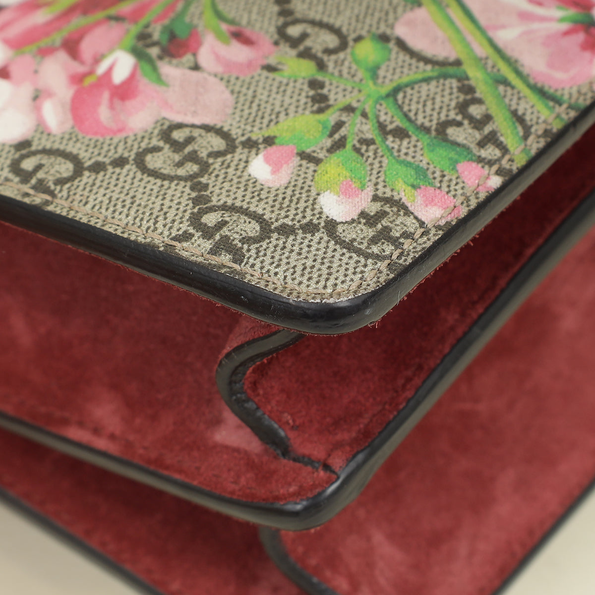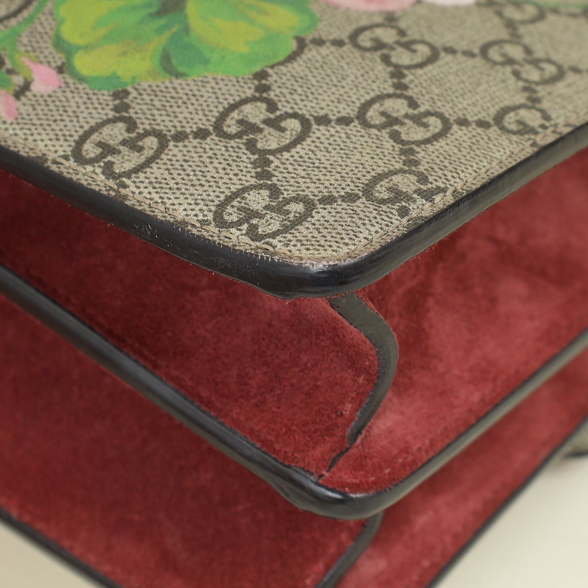 - Material: Coated Canvas with Blooms Print and Suede Trim