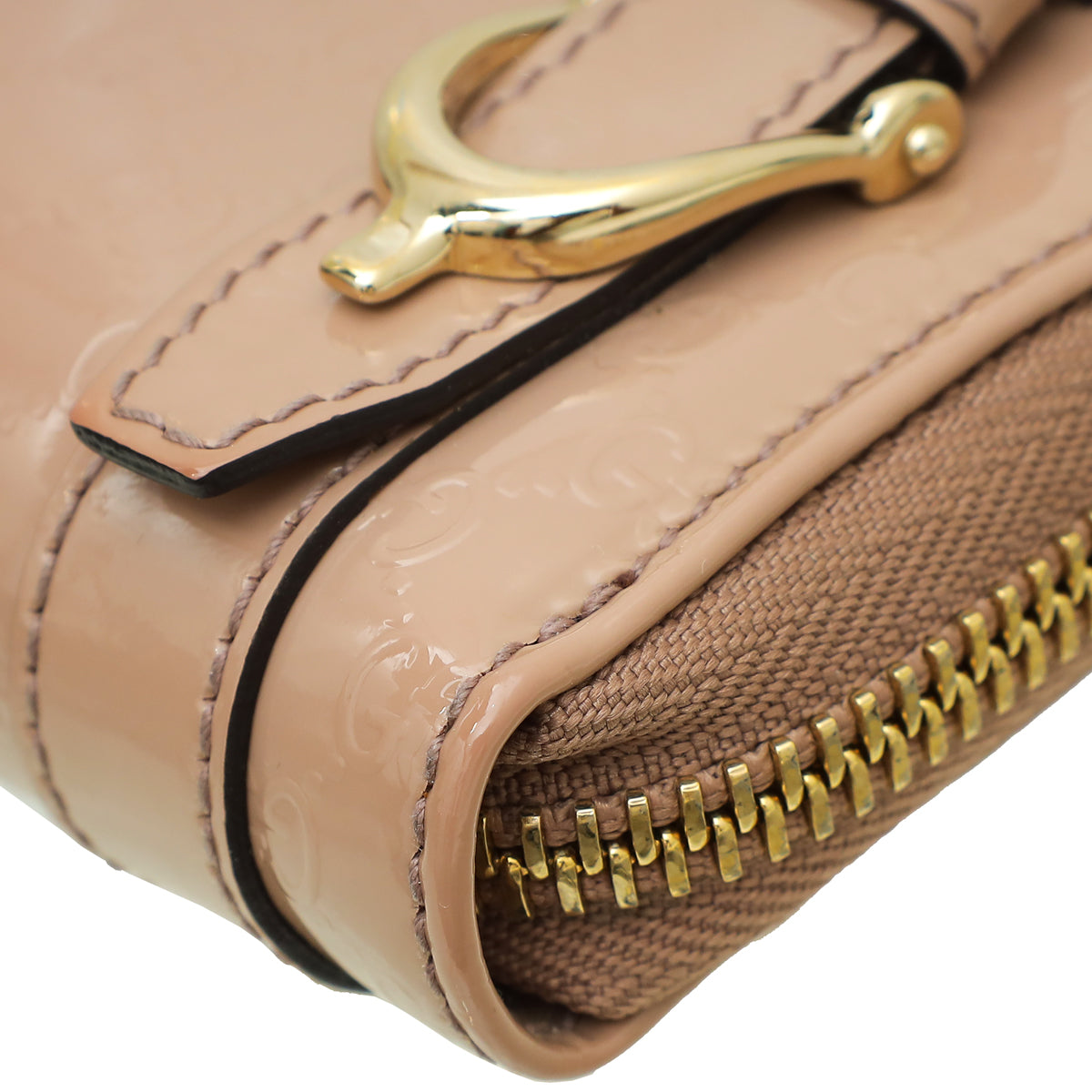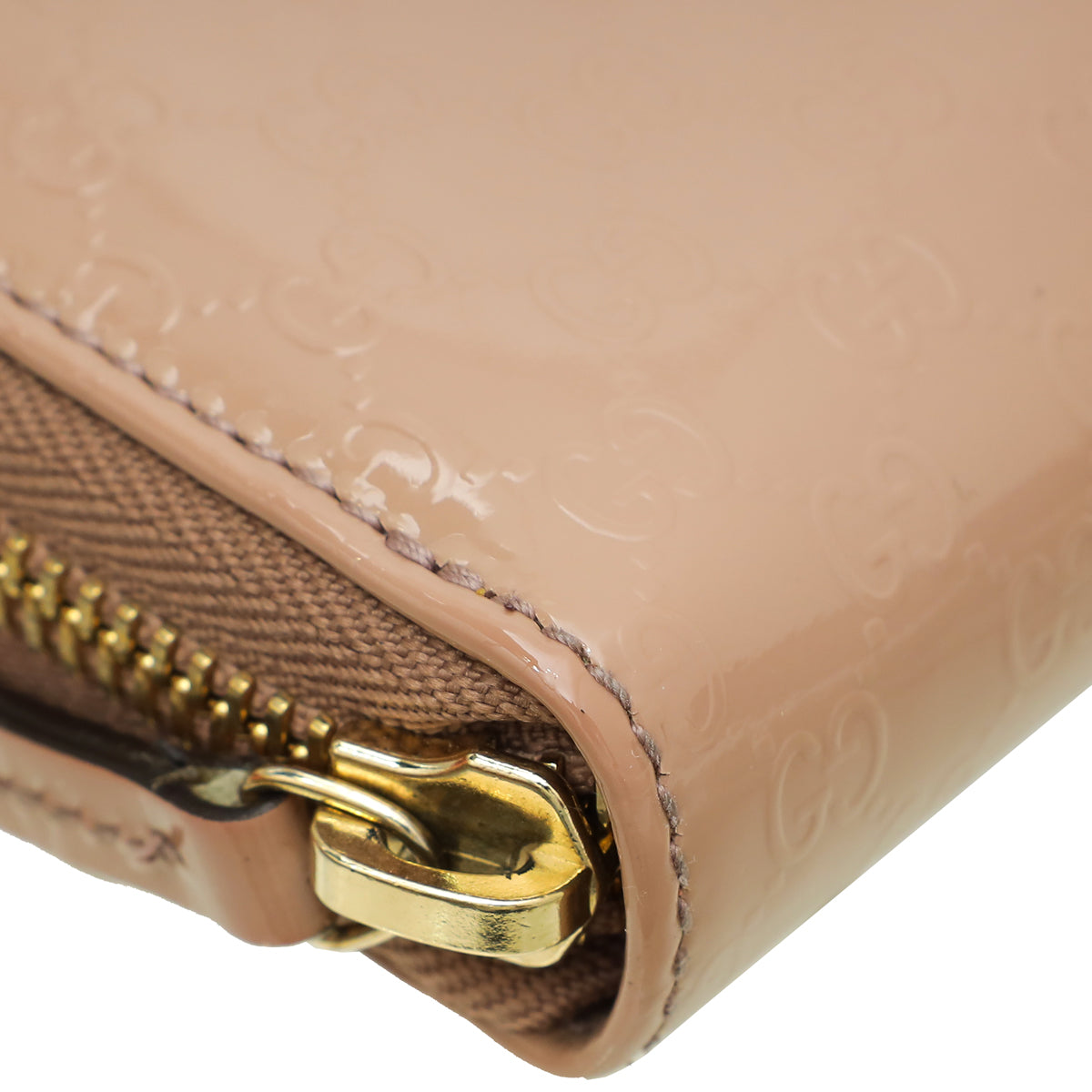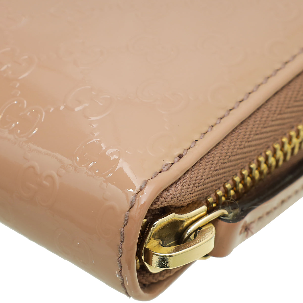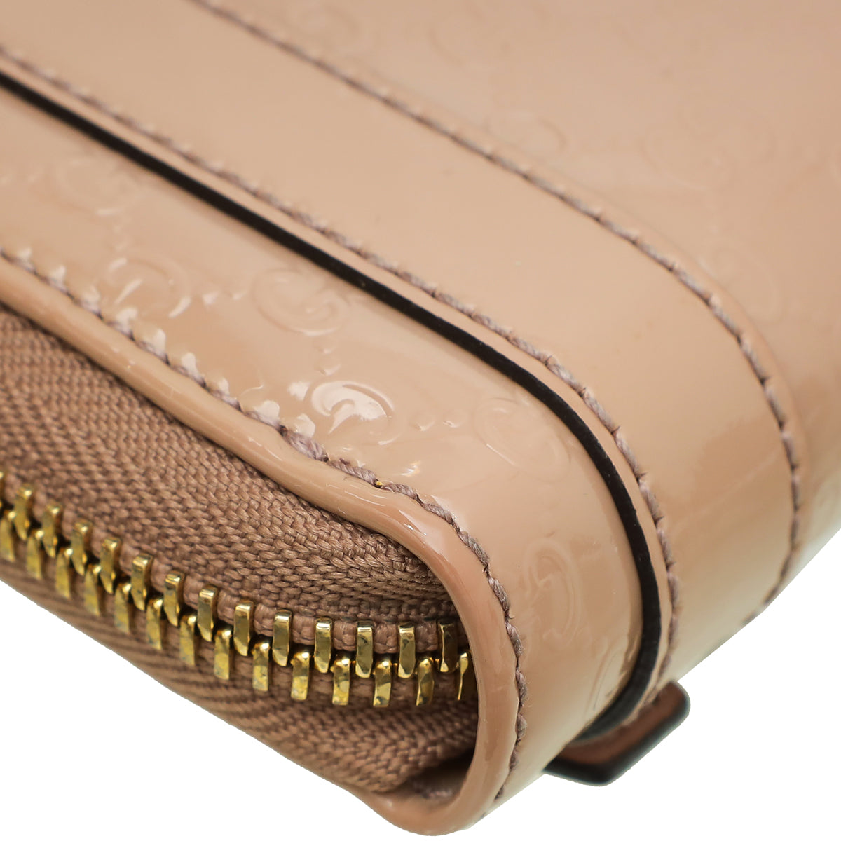 مادة : جلد لامع منقوش بنقش Micro GG باللون البيج