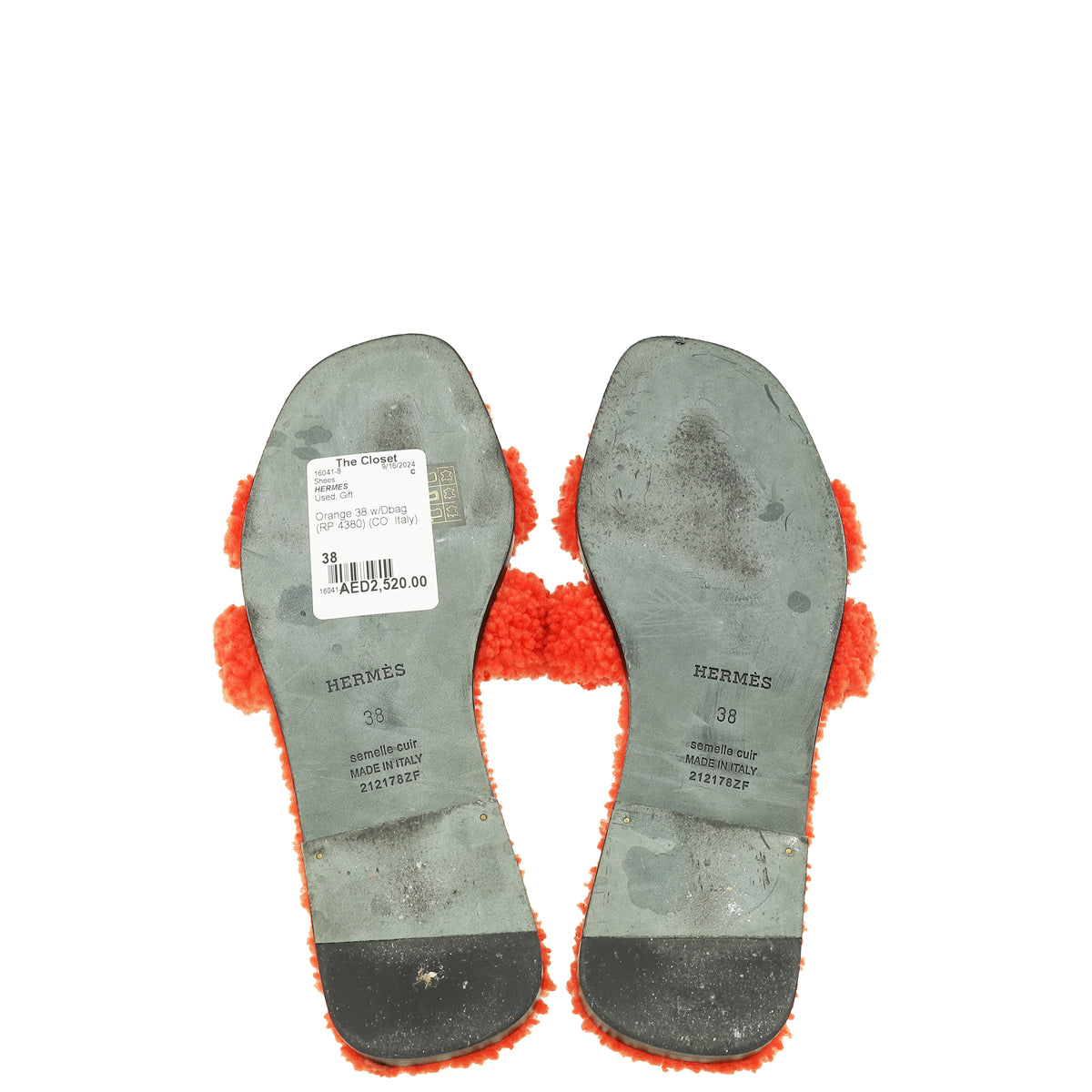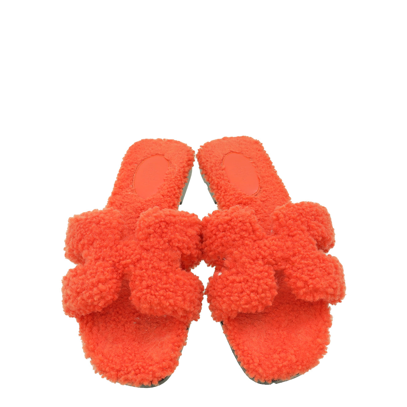 Material: Orange Shearling Wool with Iconic "H" Cut Out