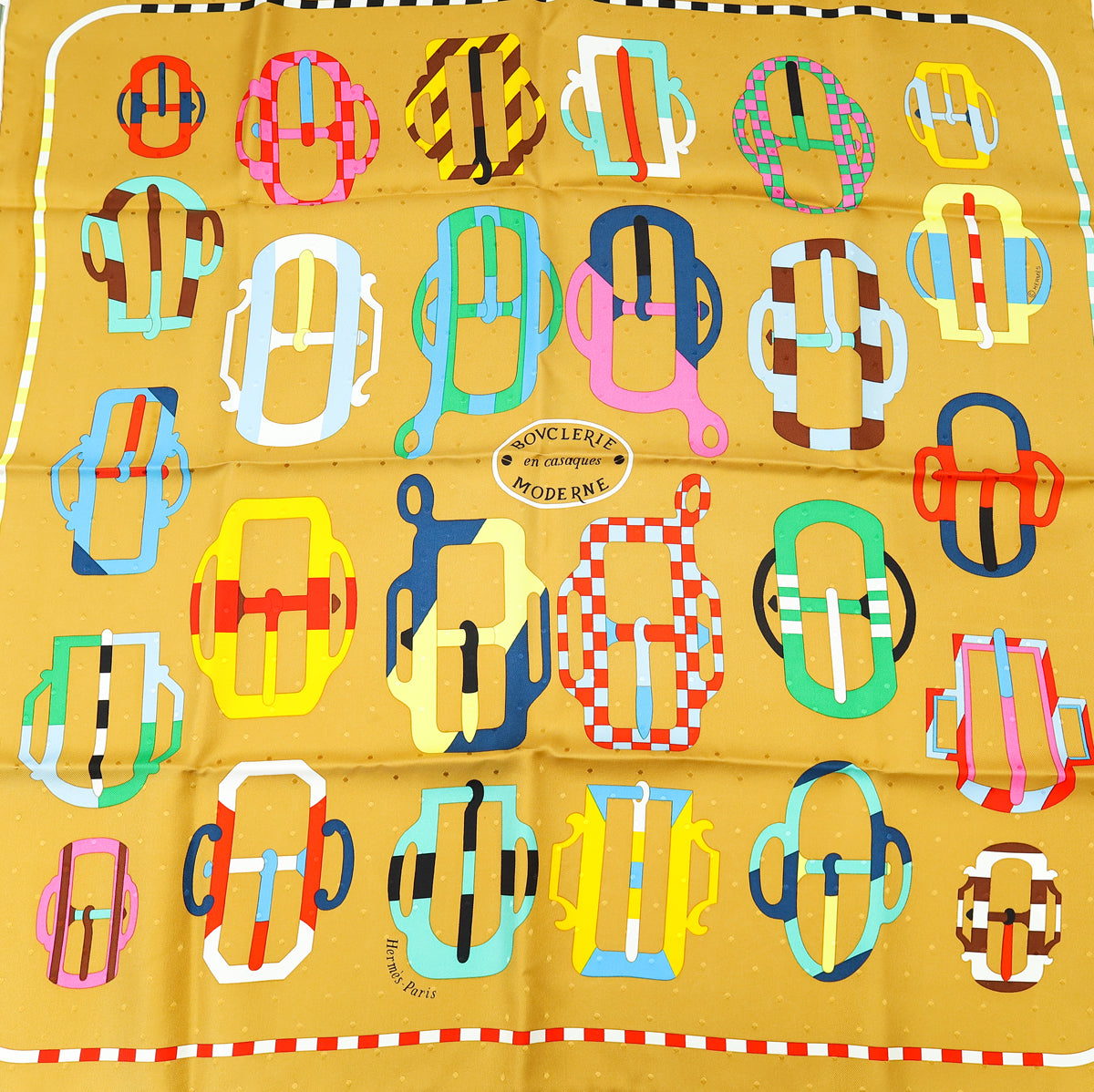 Hermes Tricolor Bouclerie Moderne Plumetis Silk 70 Scarf-Hermes-THE CLOSET
