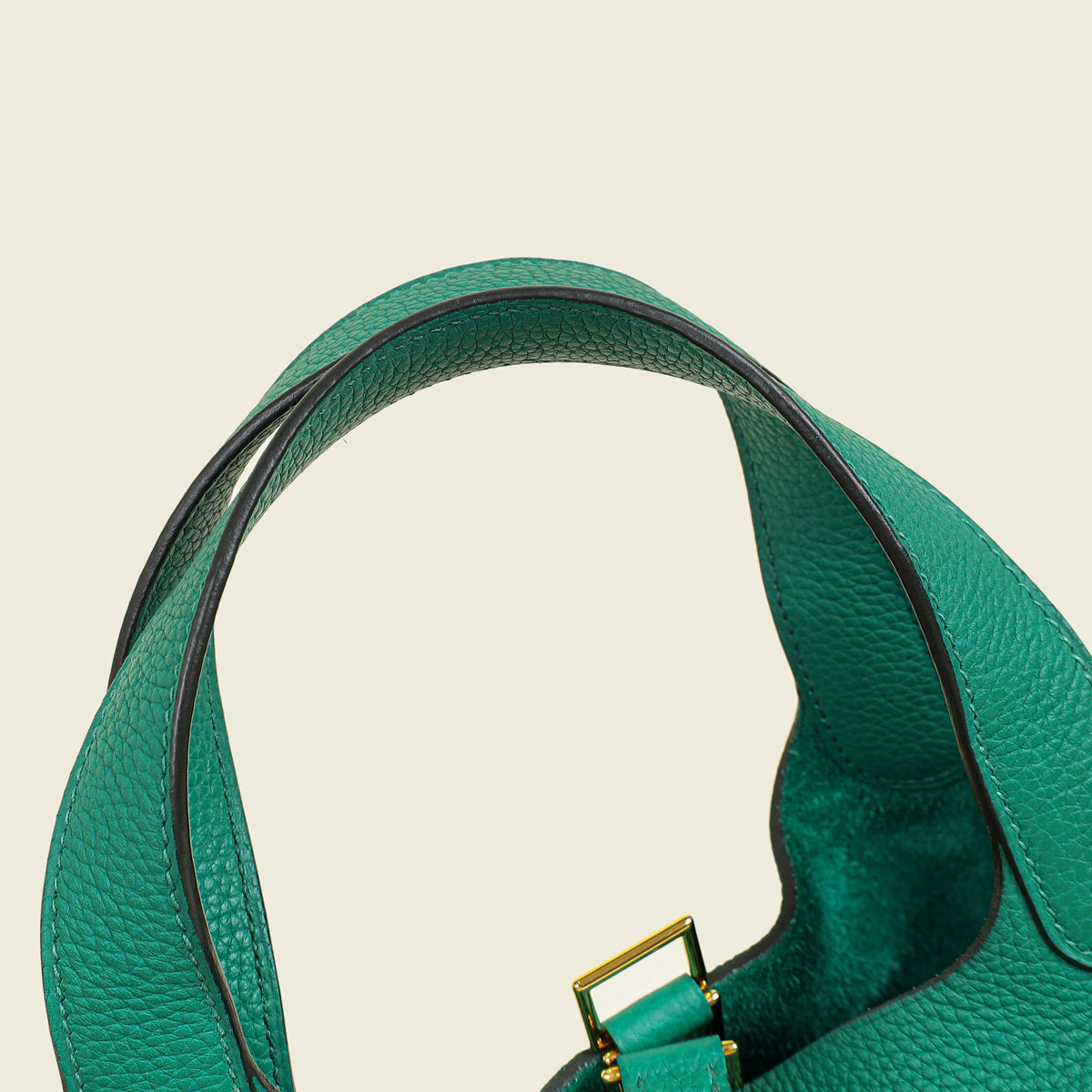 - Closure type: Open with Leather Cinch Strap with Lock Closure