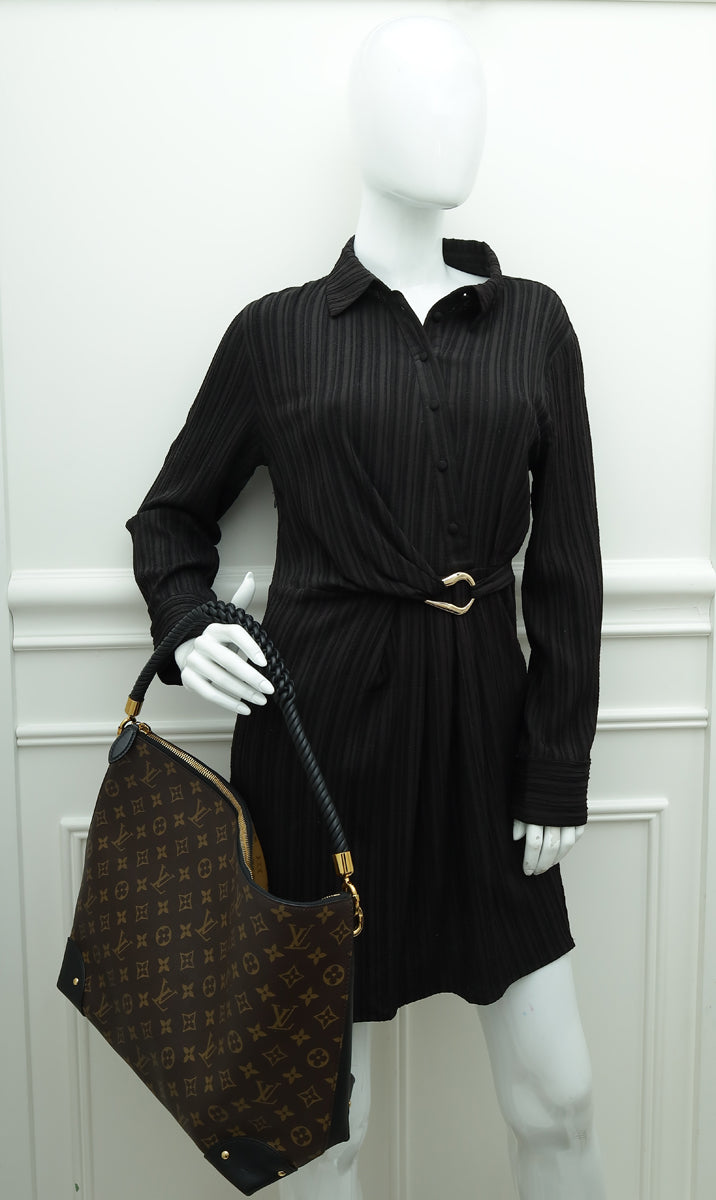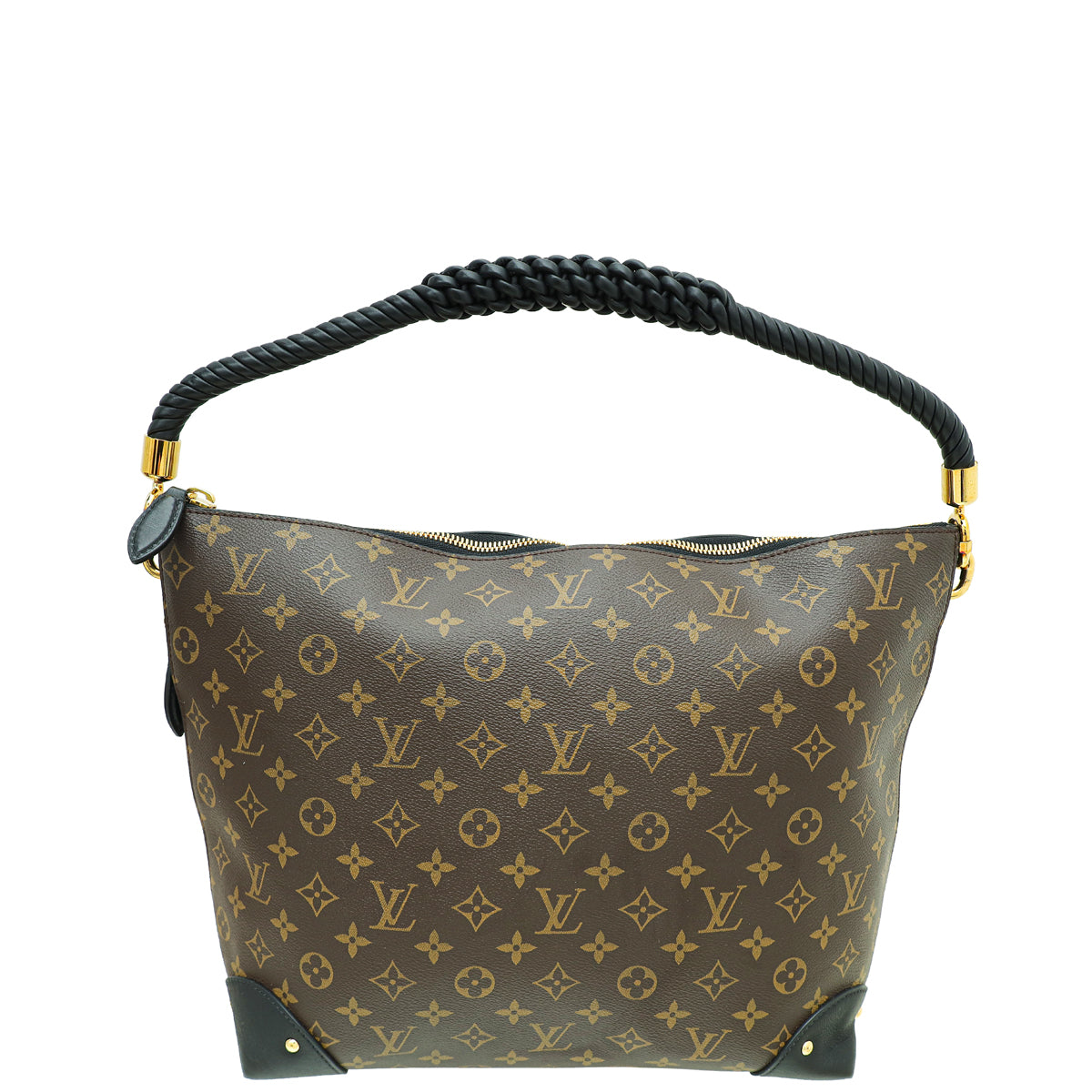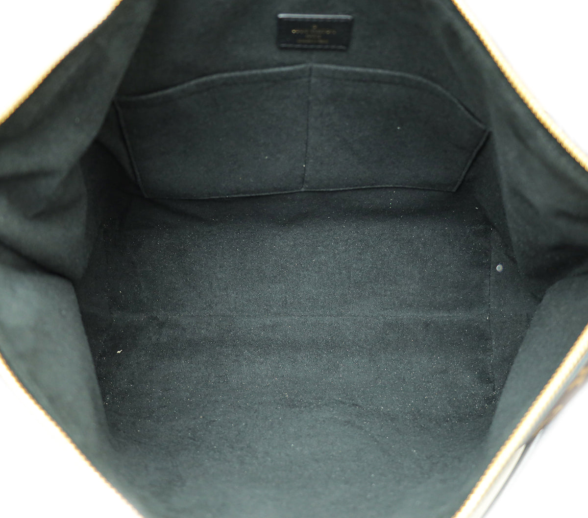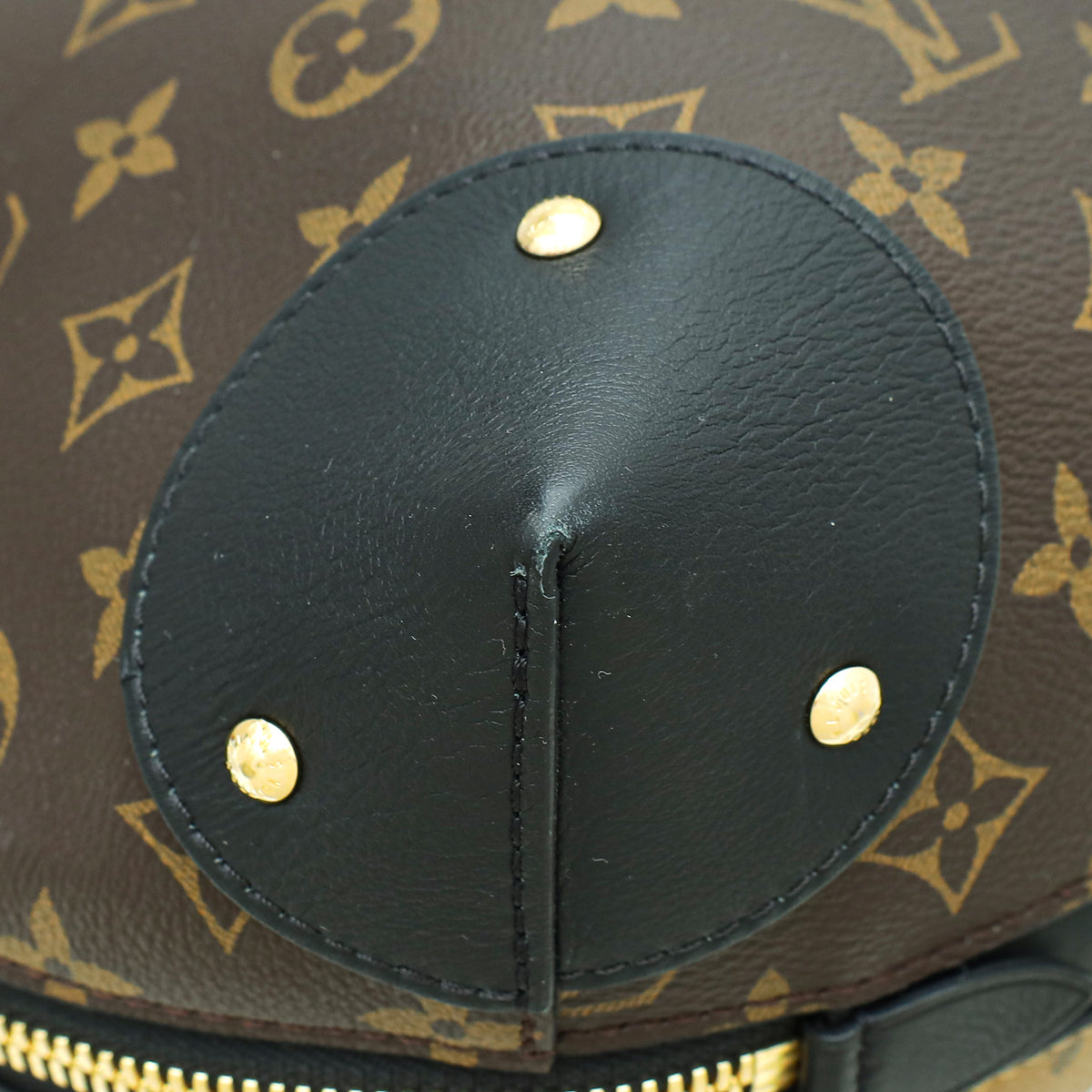 - المادة : قماش مطلي باللون البني وشعار المونوجرام مع زخرفة من جلد العجل باللون الأسود