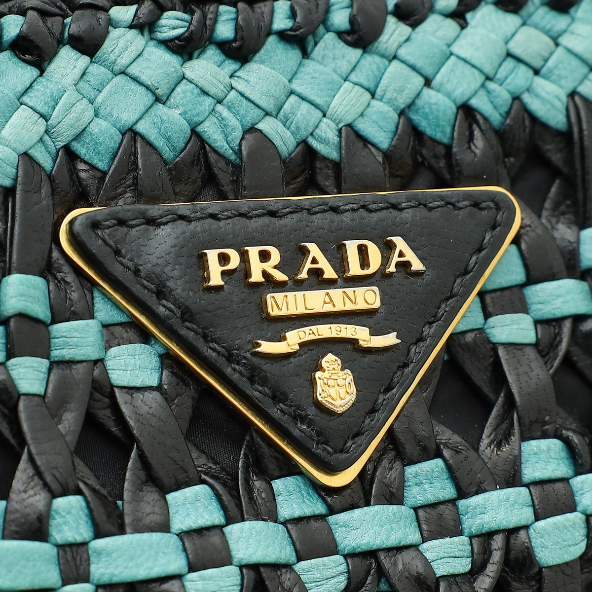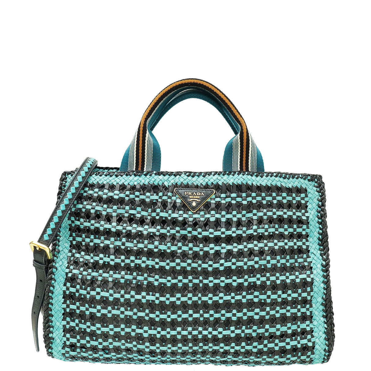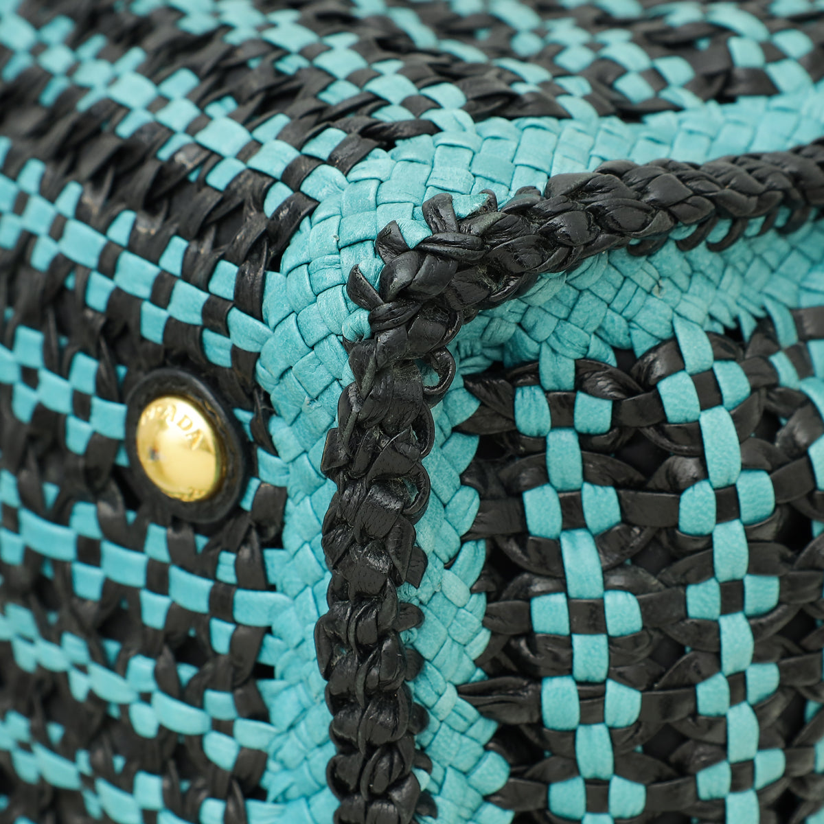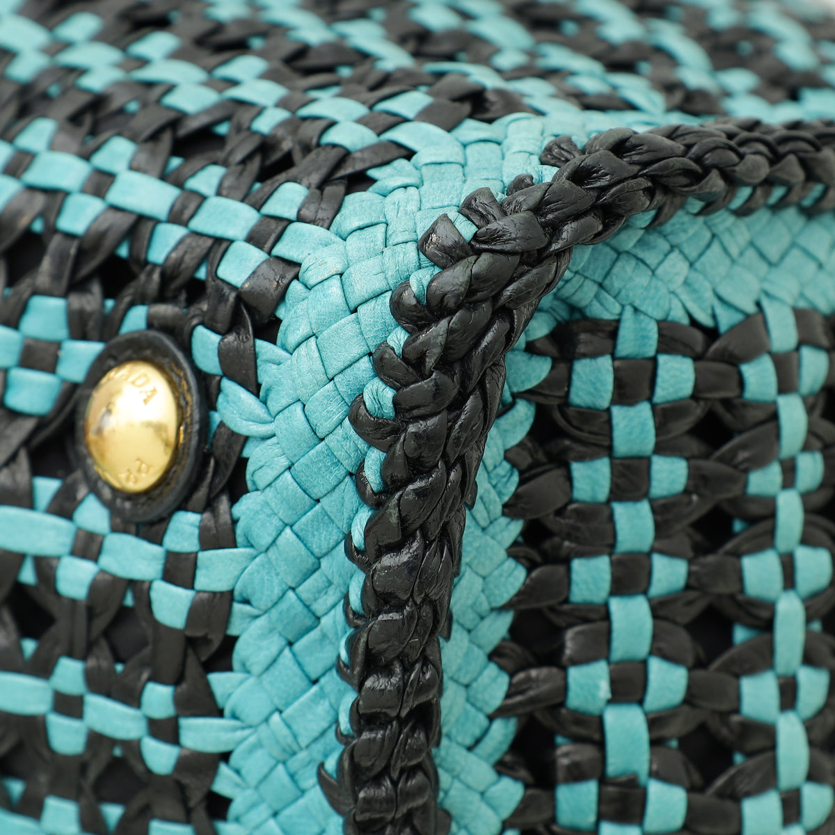 Prada Bicolor Woven Madras Top Handle Tote Bag