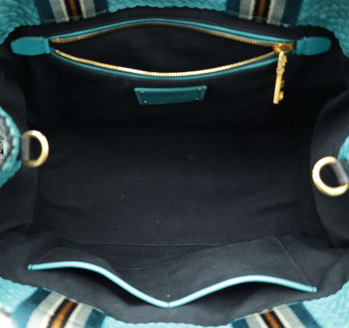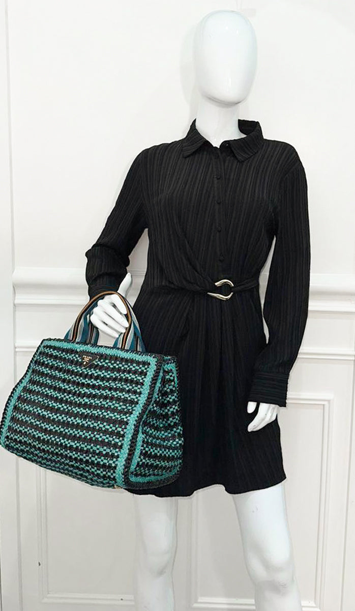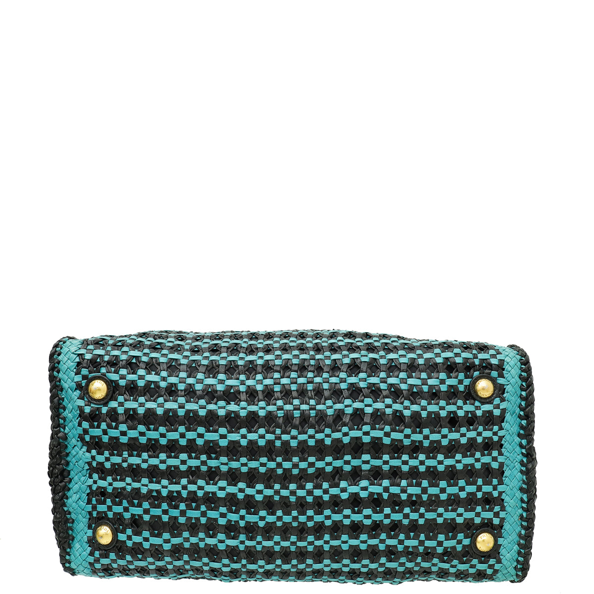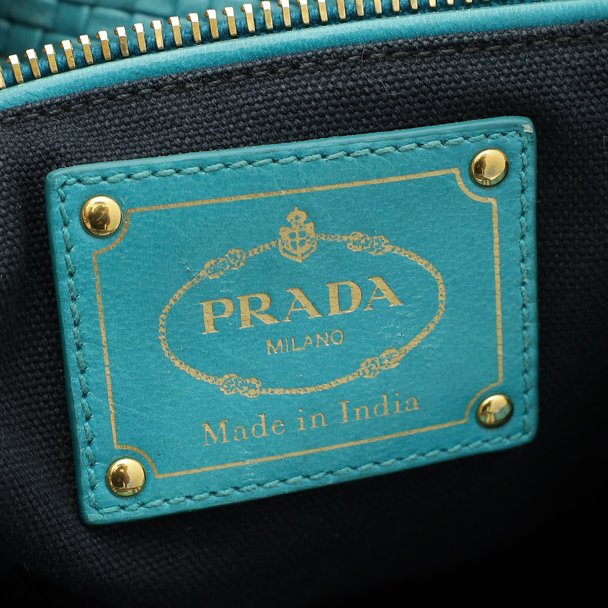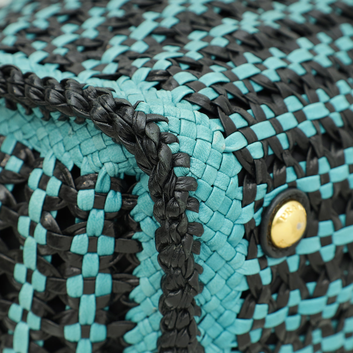 Prada Bicolor Woven Madras Top Handle Tote Bag
