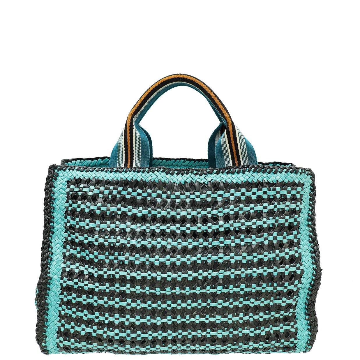 Material: Blue/Black Goatskin with Jacquard Top Handle