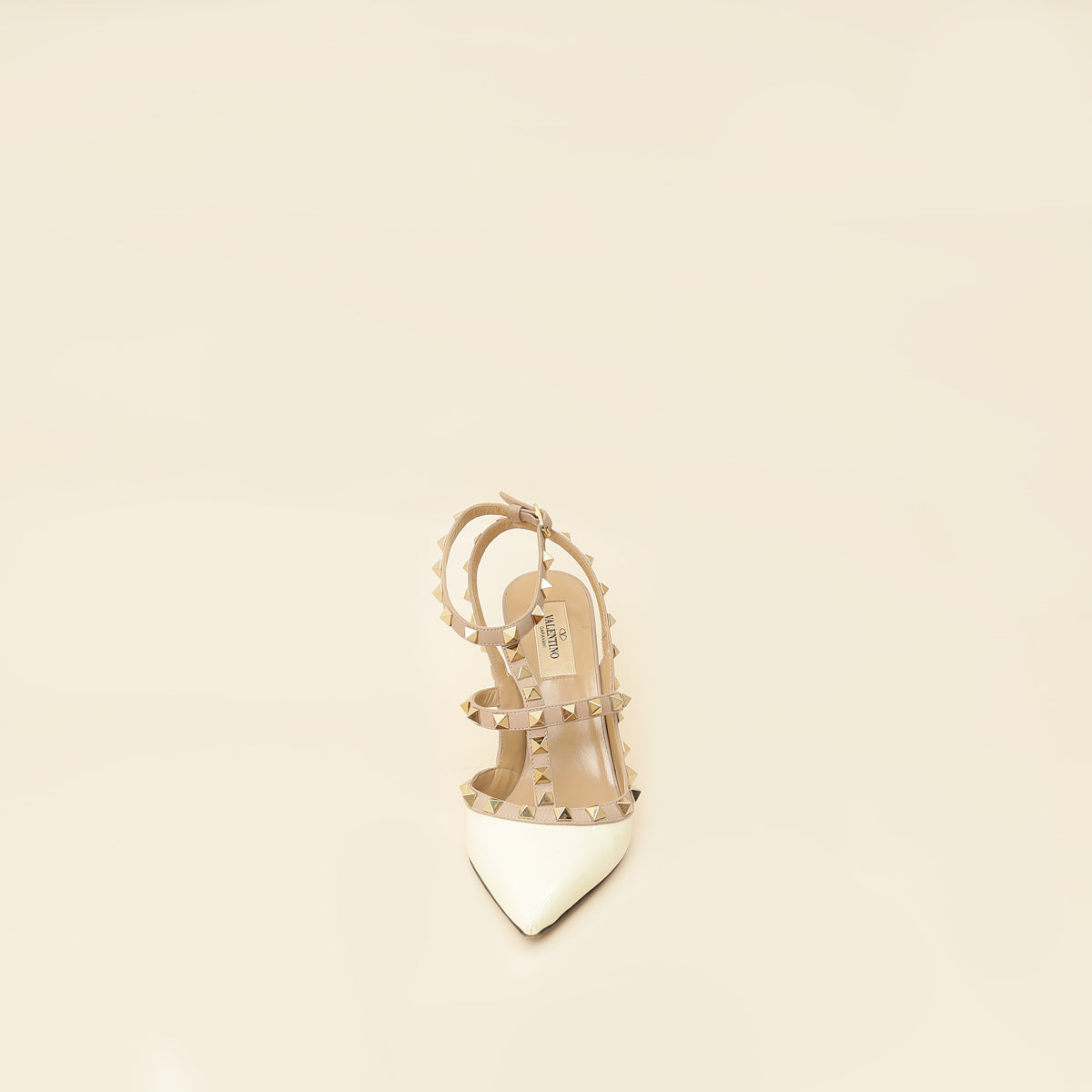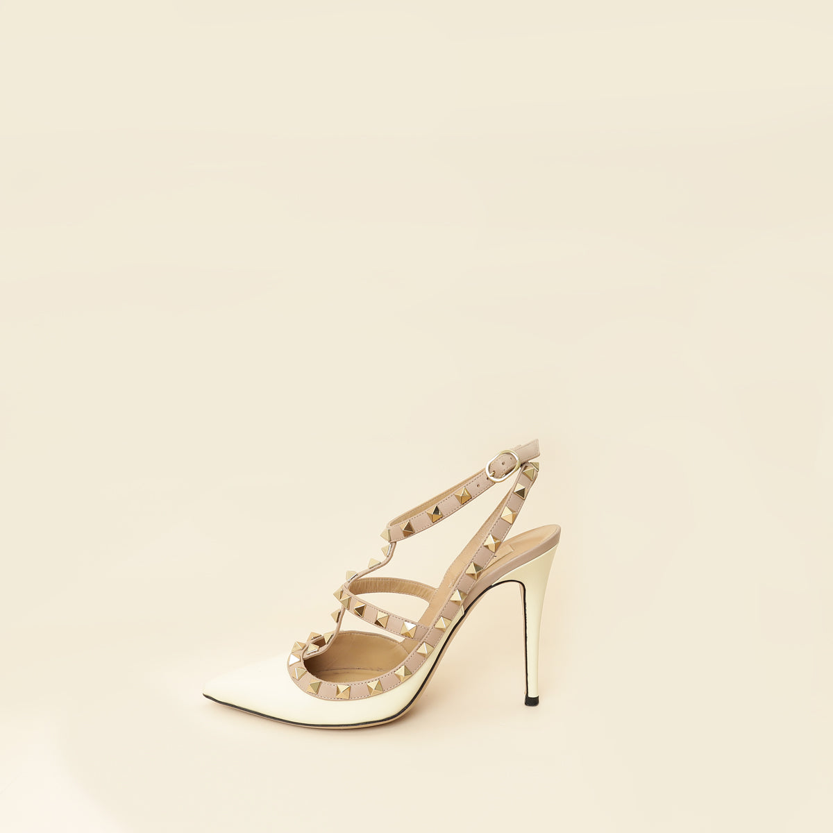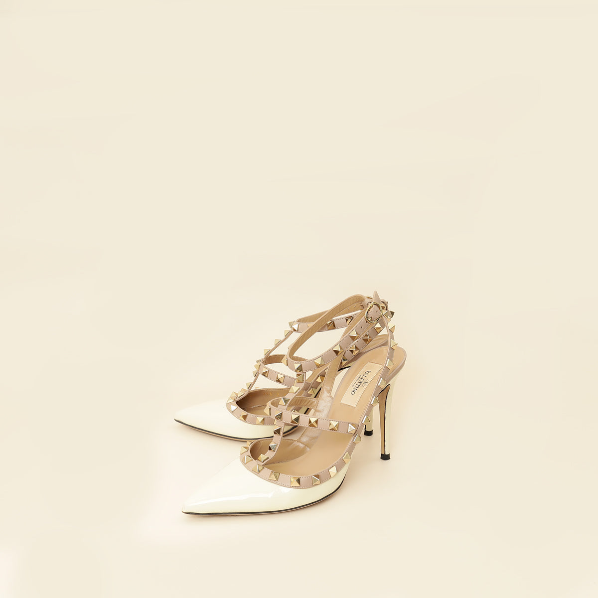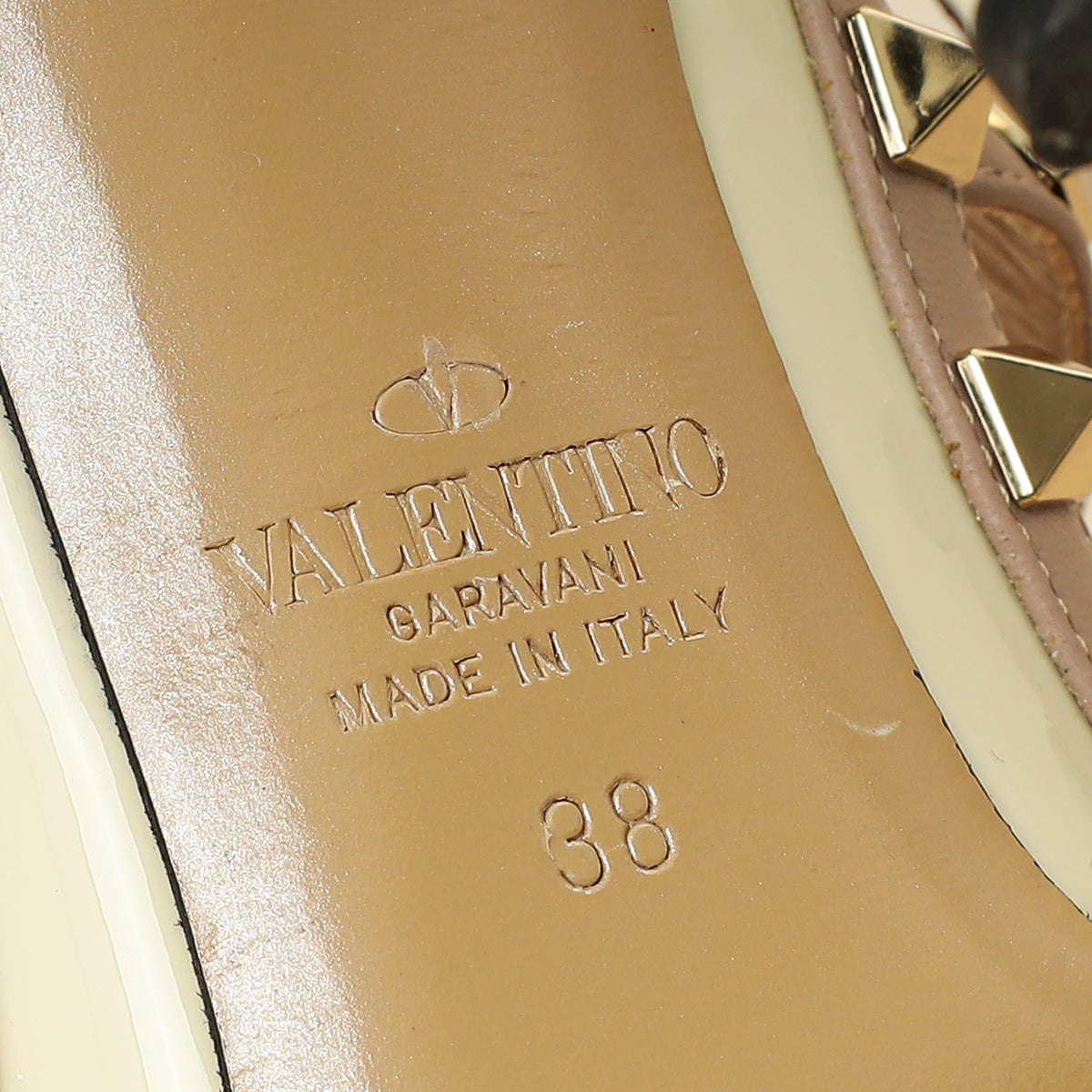 Material: White Patent Leather and Powder Nappa Leather Trim with Studs