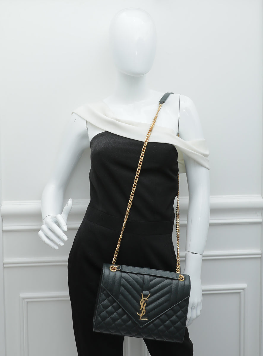 ysl vert fonce monogram envelope مزيج كيس متوسطة مبطن
