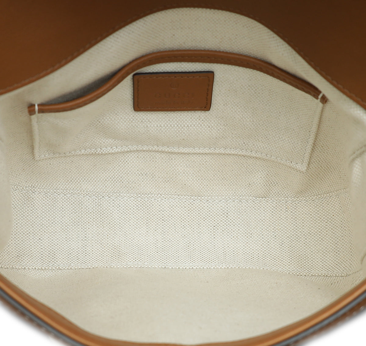 Material: Ebony GG Coated Canvas and Brown Calfskin Leather Trim with Horsebit Detail