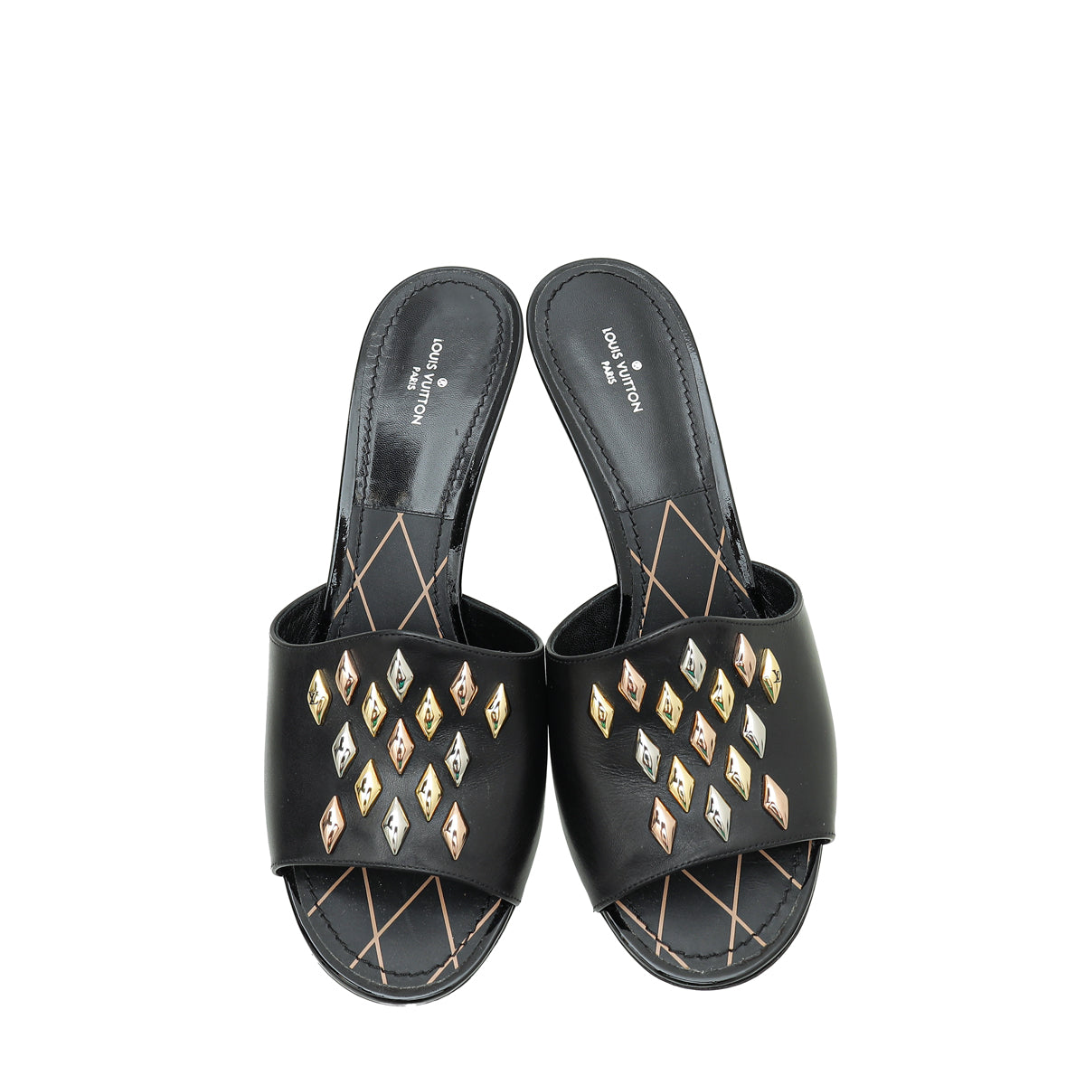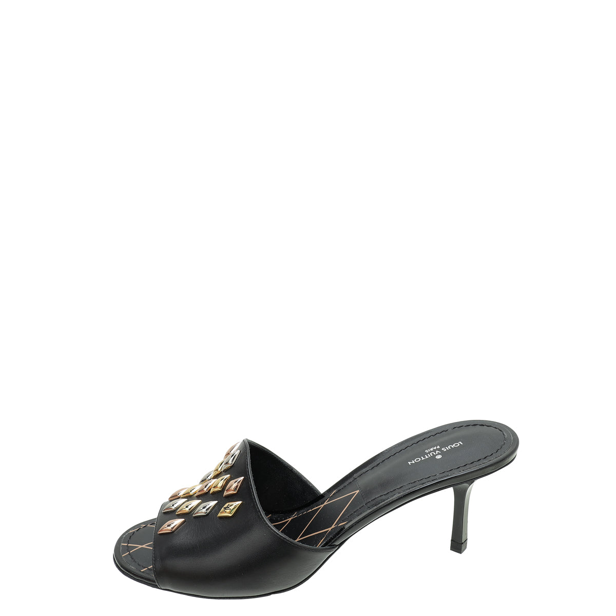 Louis Vuitton Black Studded Slide Sandals 38.5