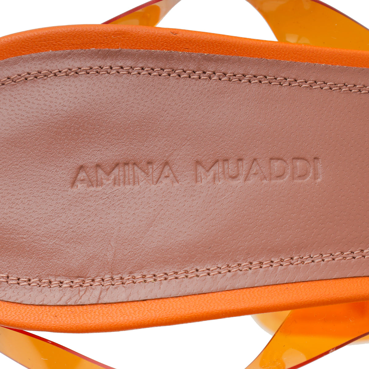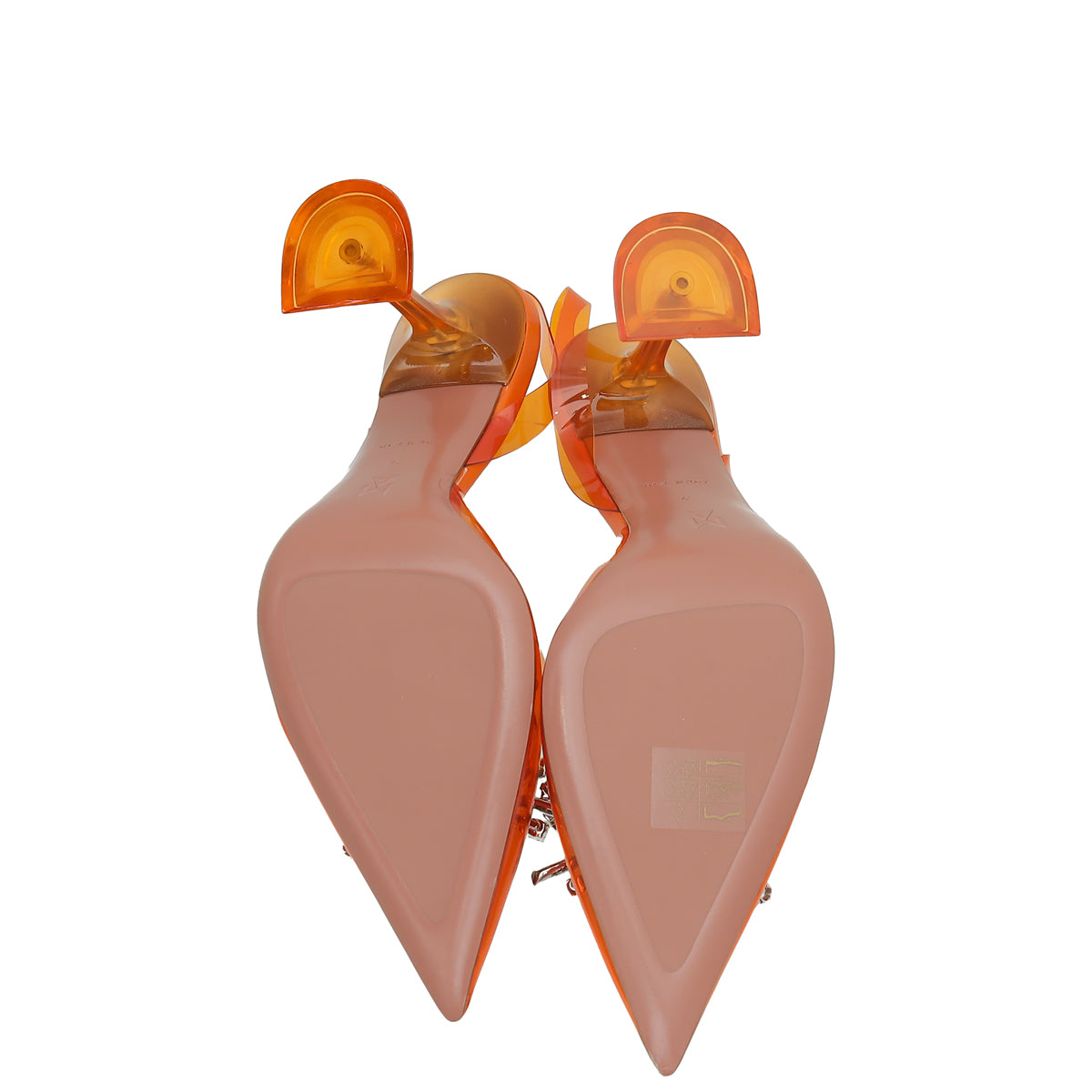 Amina Muaddi Orange Rosie Glass Crystal Bow PVC Pump