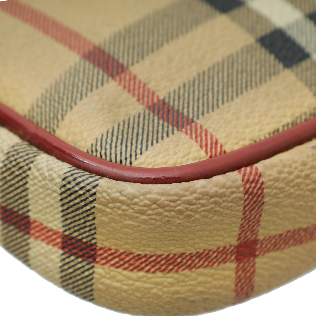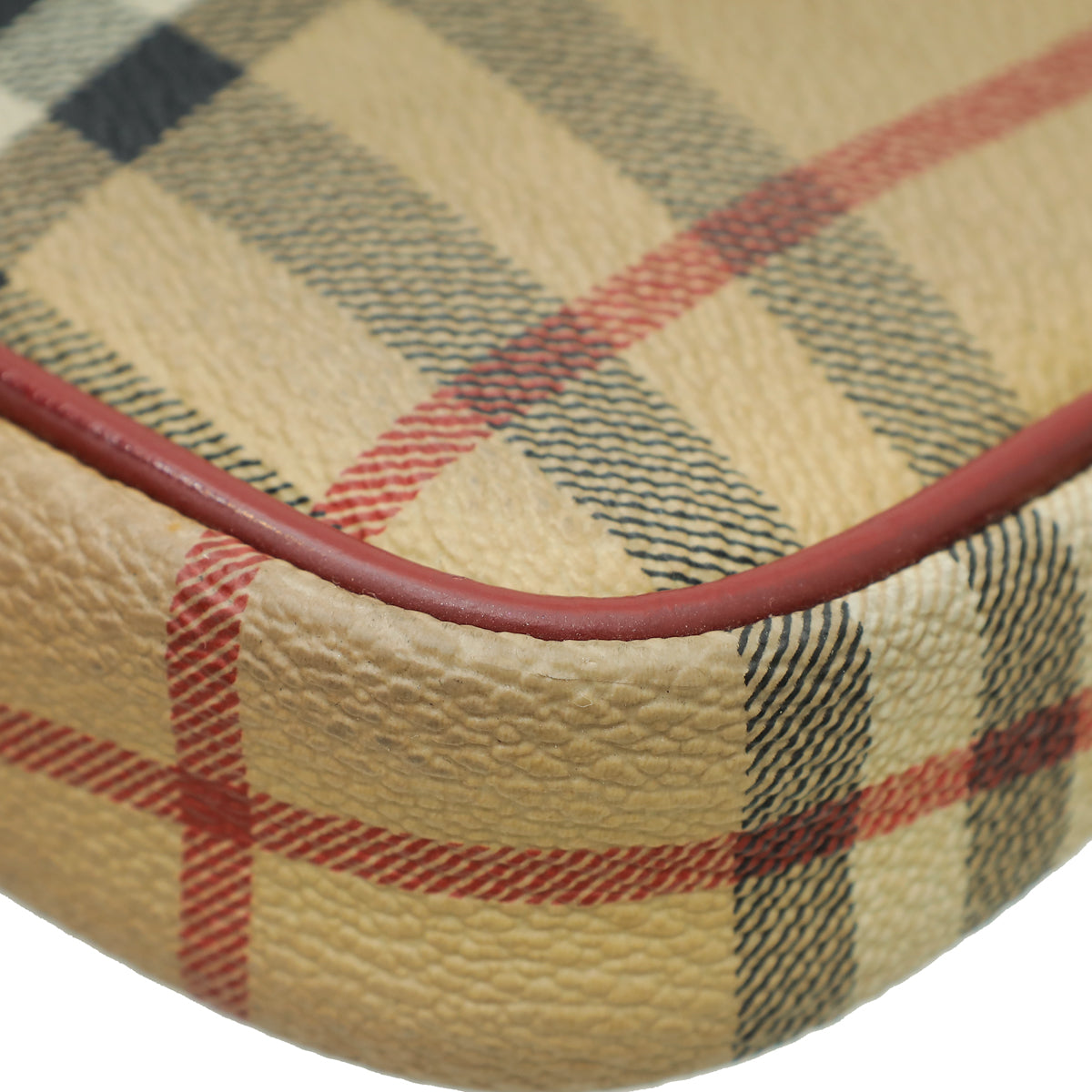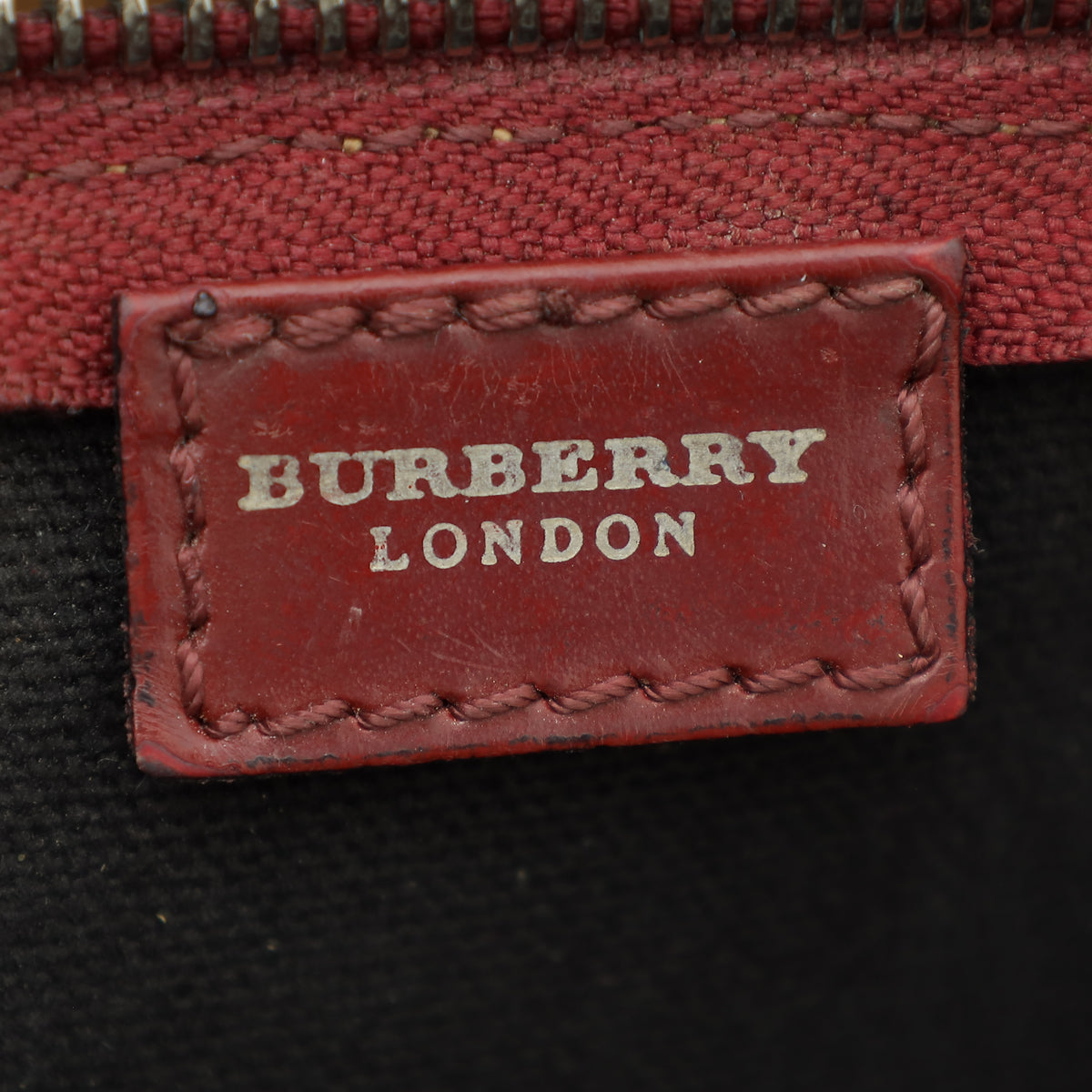 - Material: Beige House Check Canvas with Burgundy Leather Trim