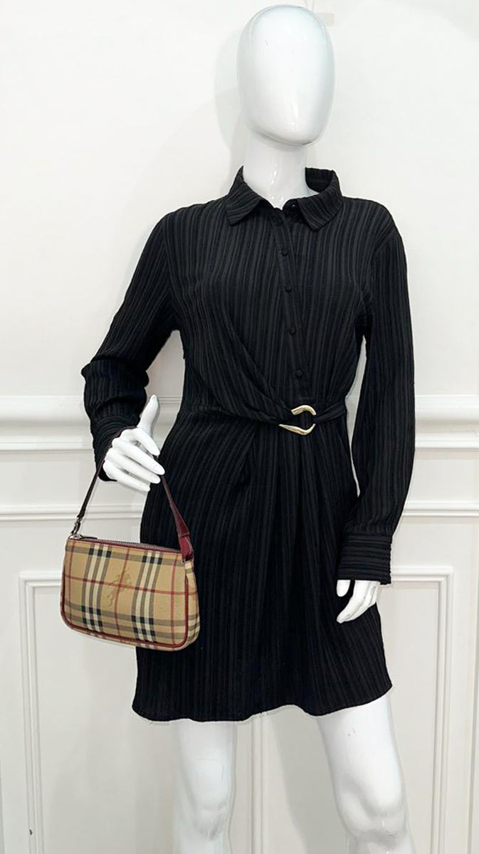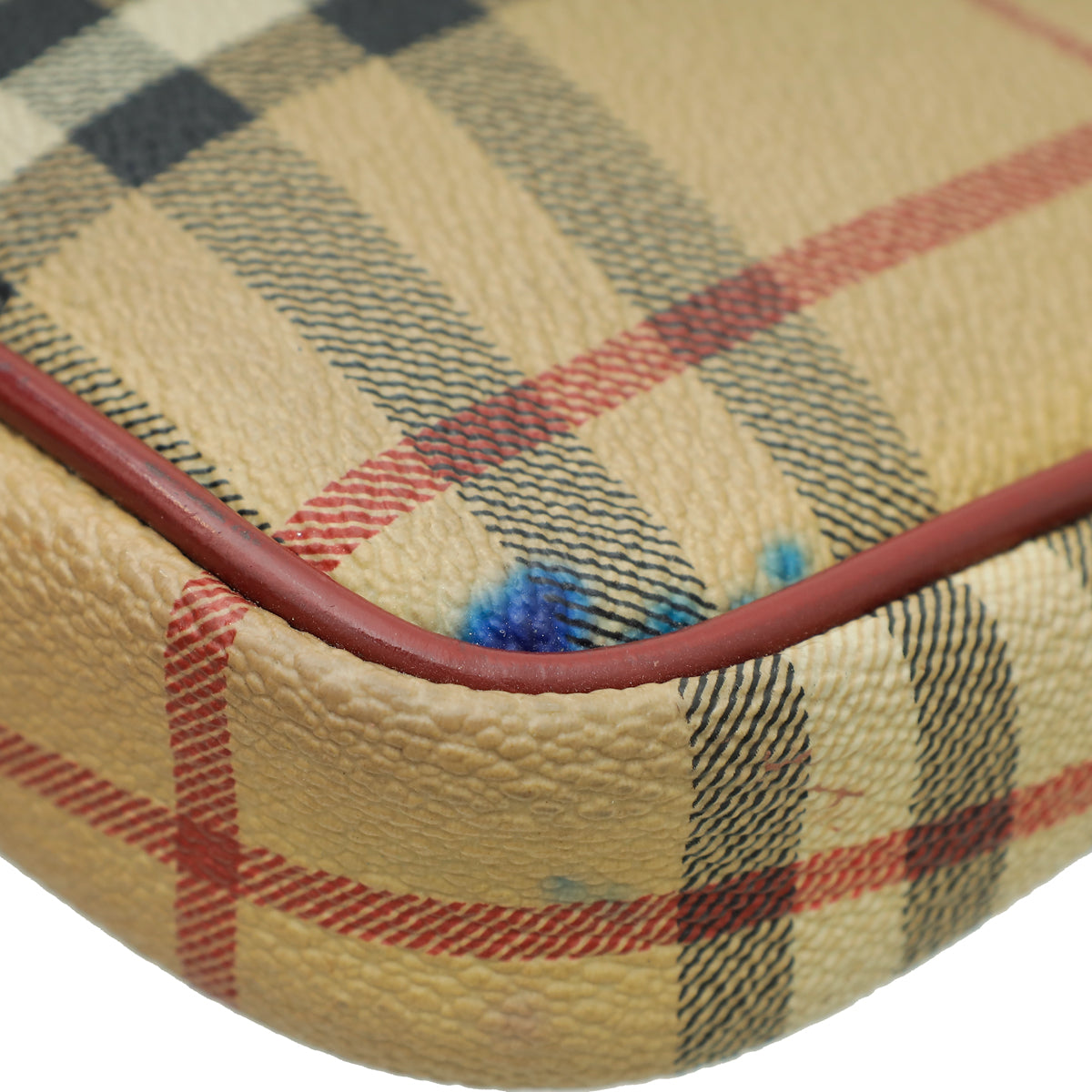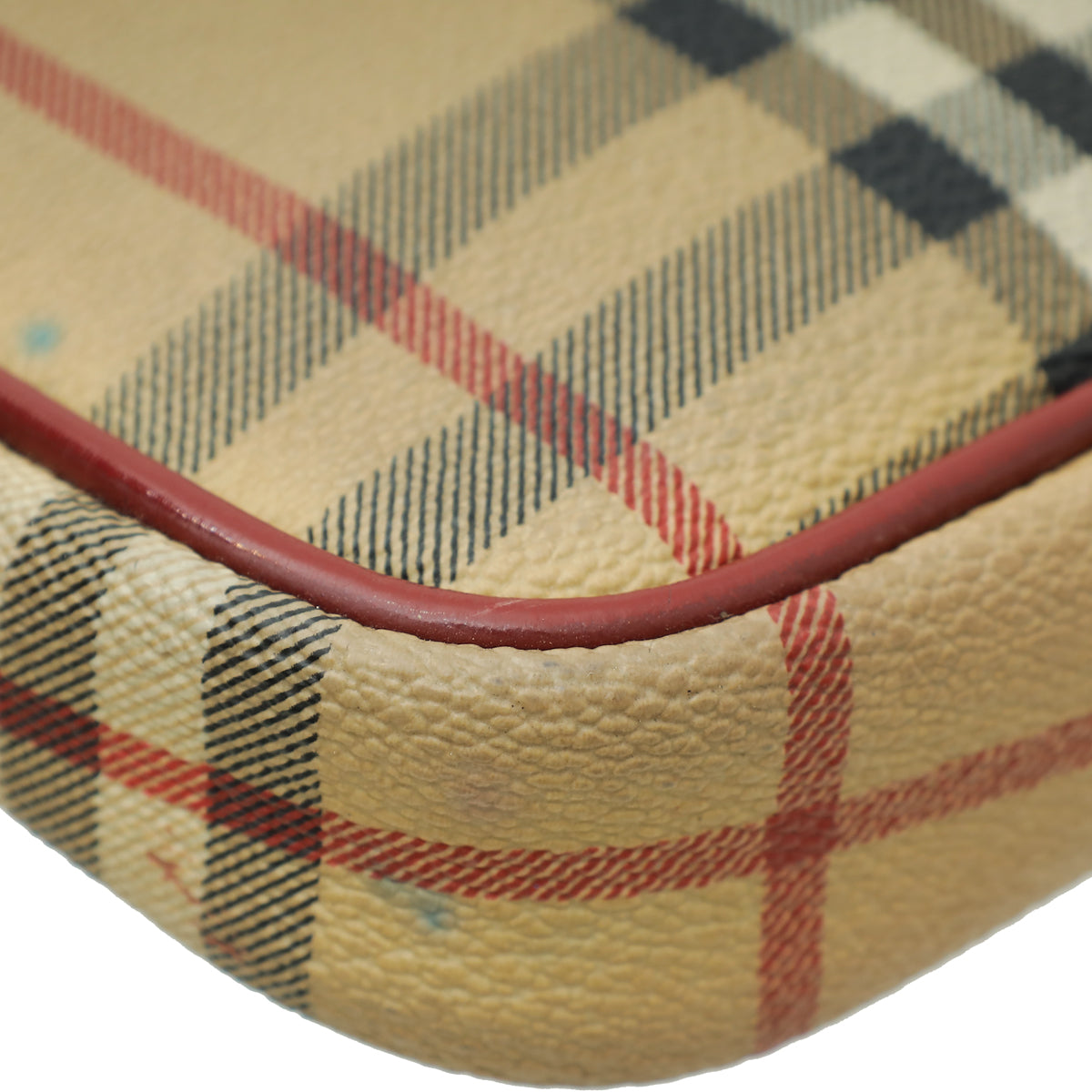 - Material: Beige House Check Canvas with Burgundy Leather Trim