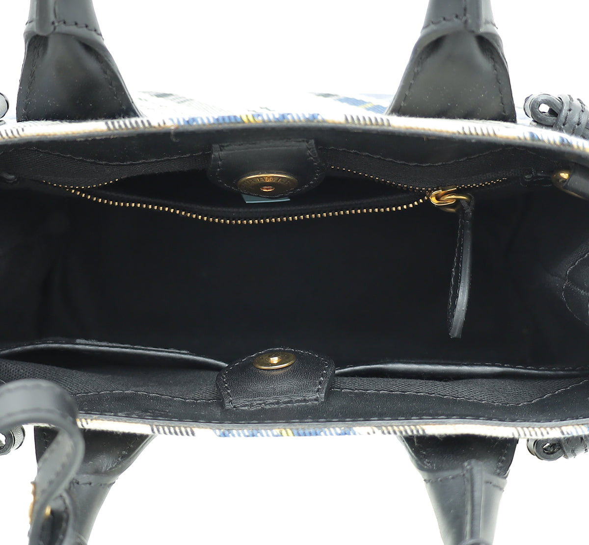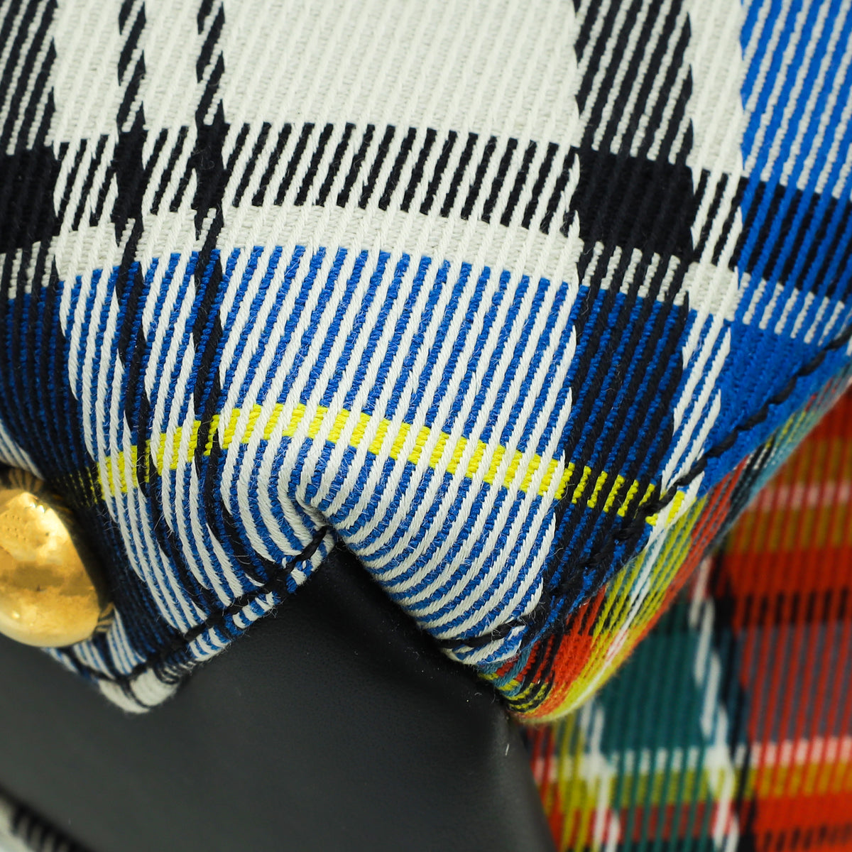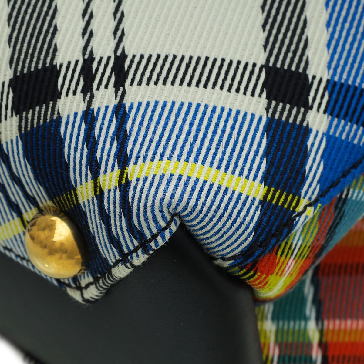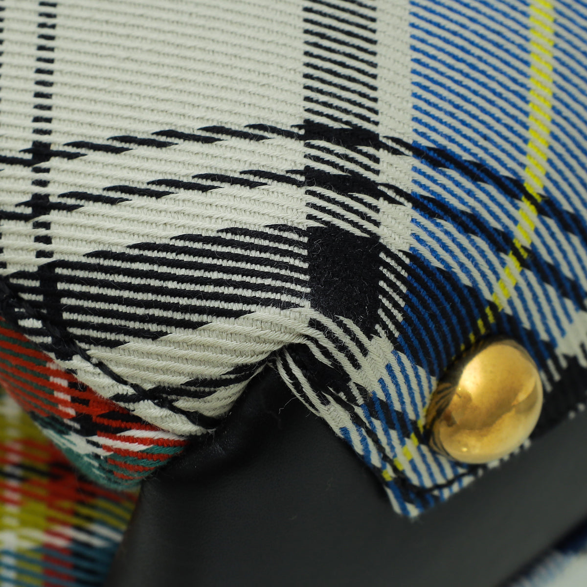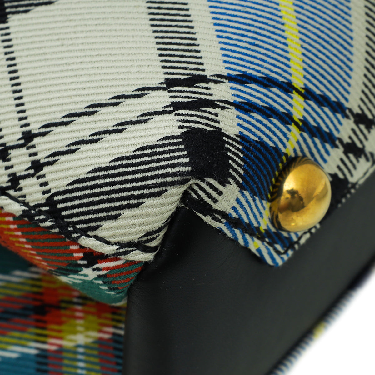 Material: White Multicolor House Check Canvas with Black Leather Trim