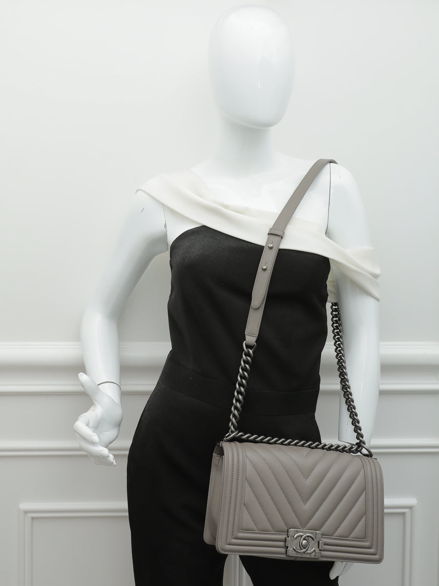 Chanel Etoupe Chevron Le Boy Medium Bag