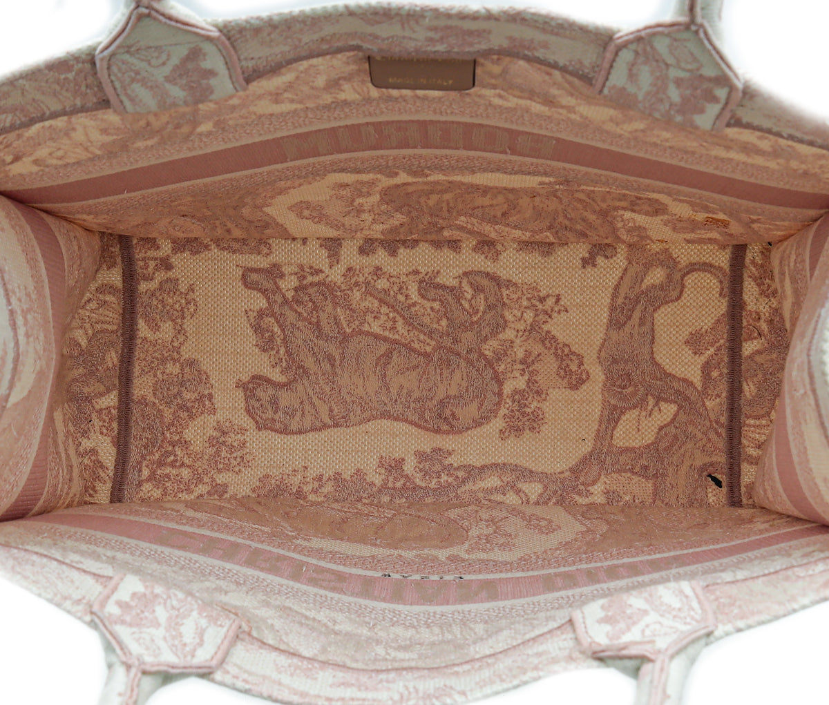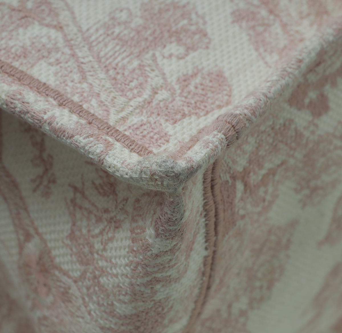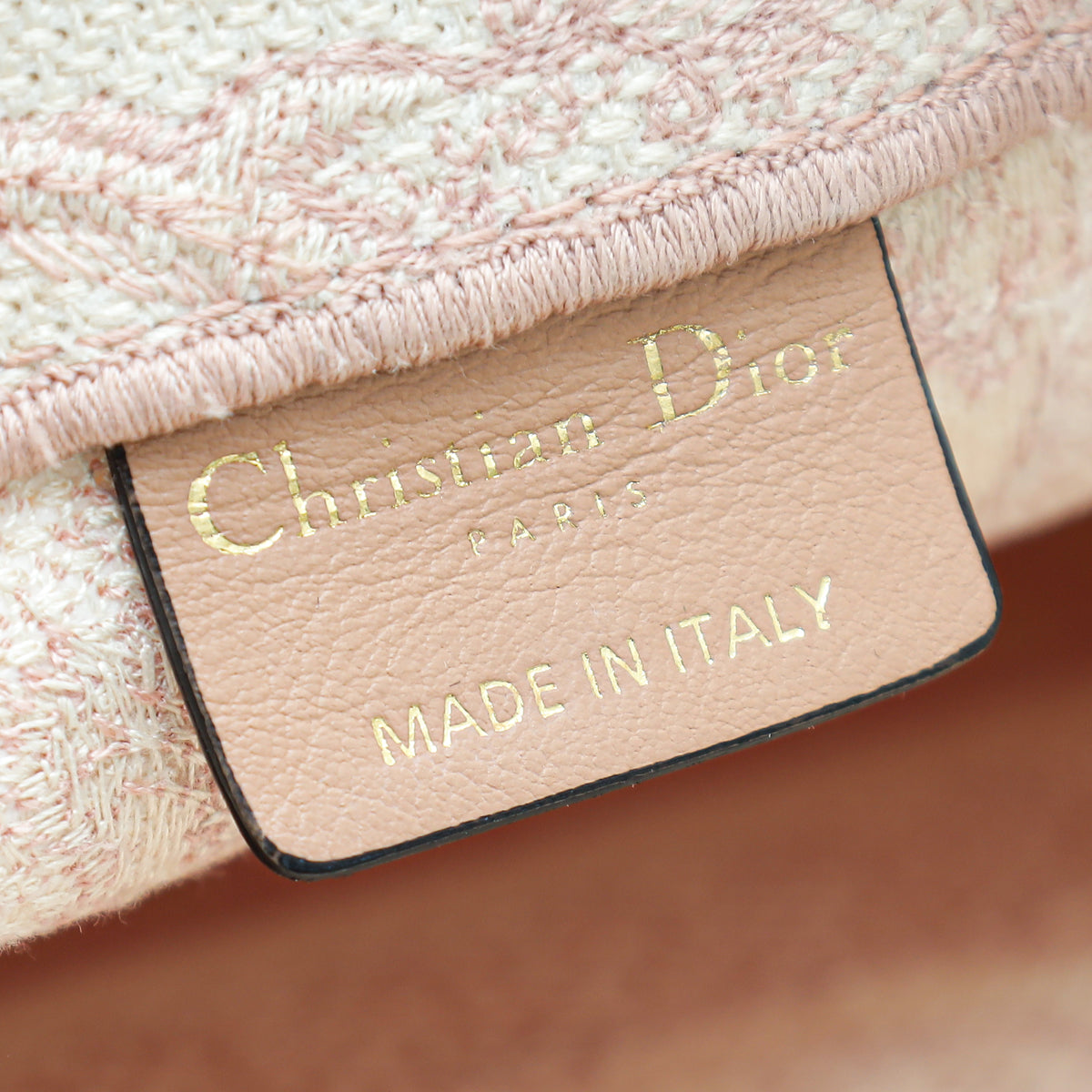 - Material: Pink/White Toile de Jouy Reverse Embroidery with 'CHRISTIAN DIOR' Signature
