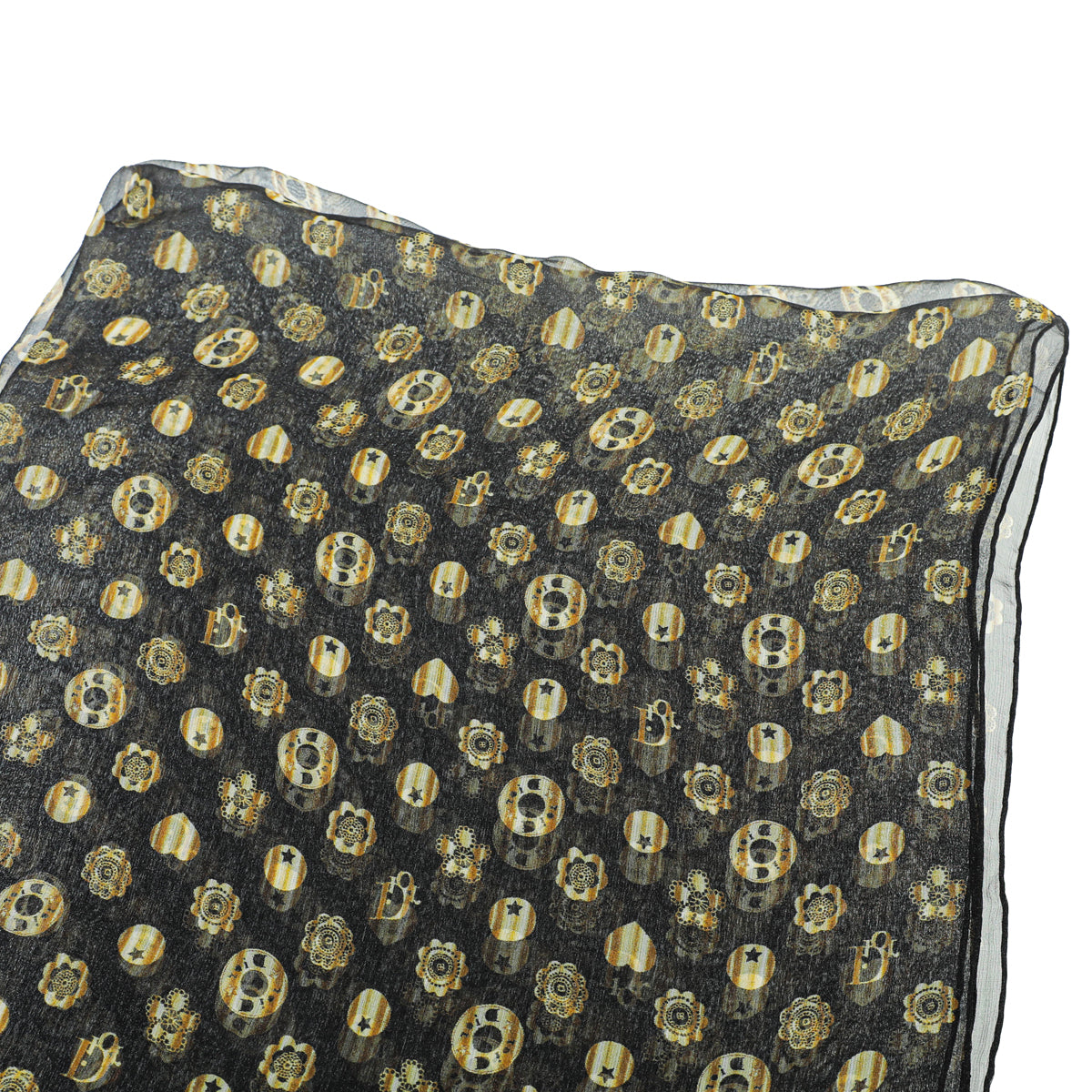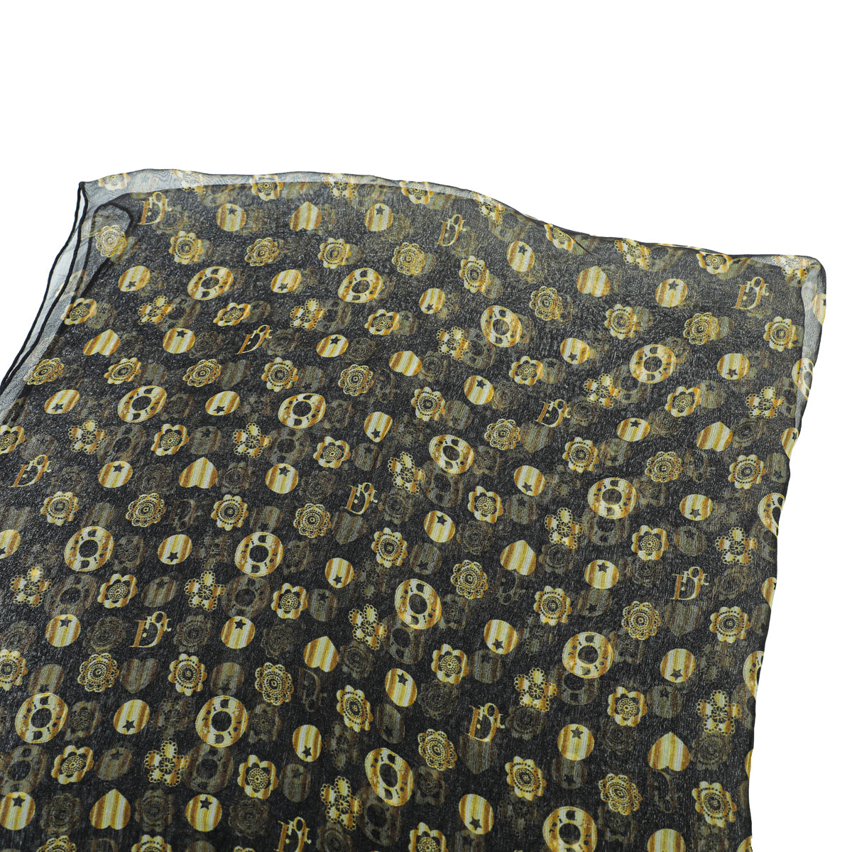 Christian Dior Bicolor Heart Star Ball Logo Print Silk Scarf