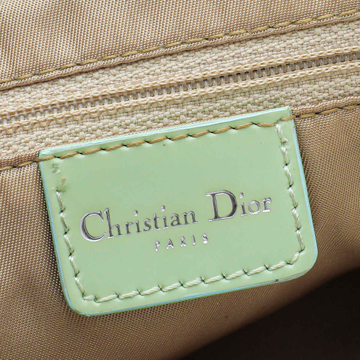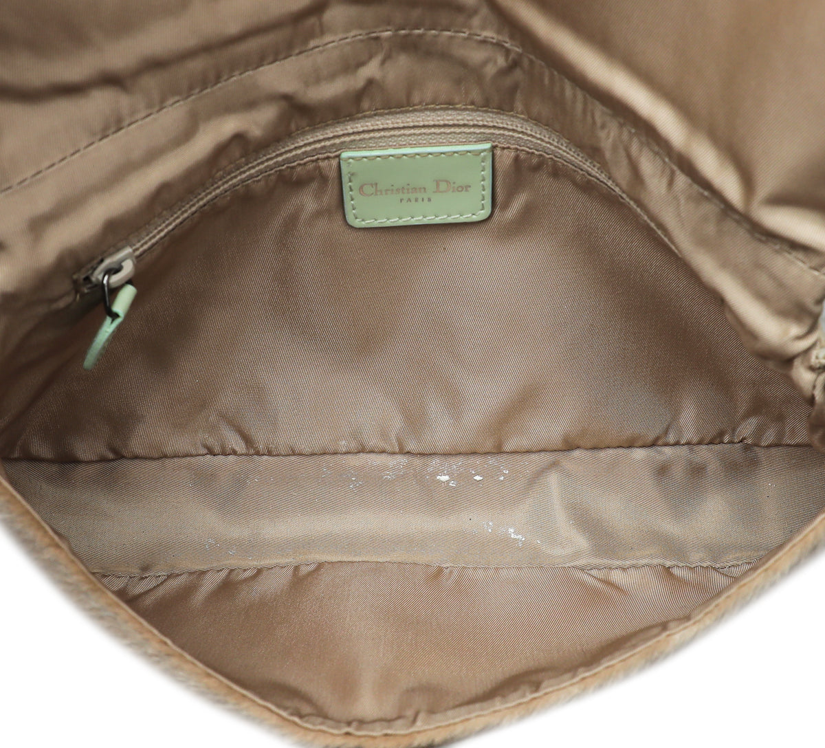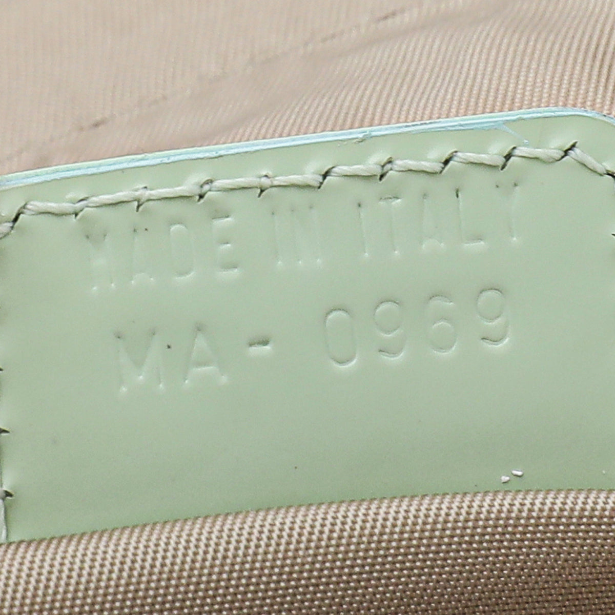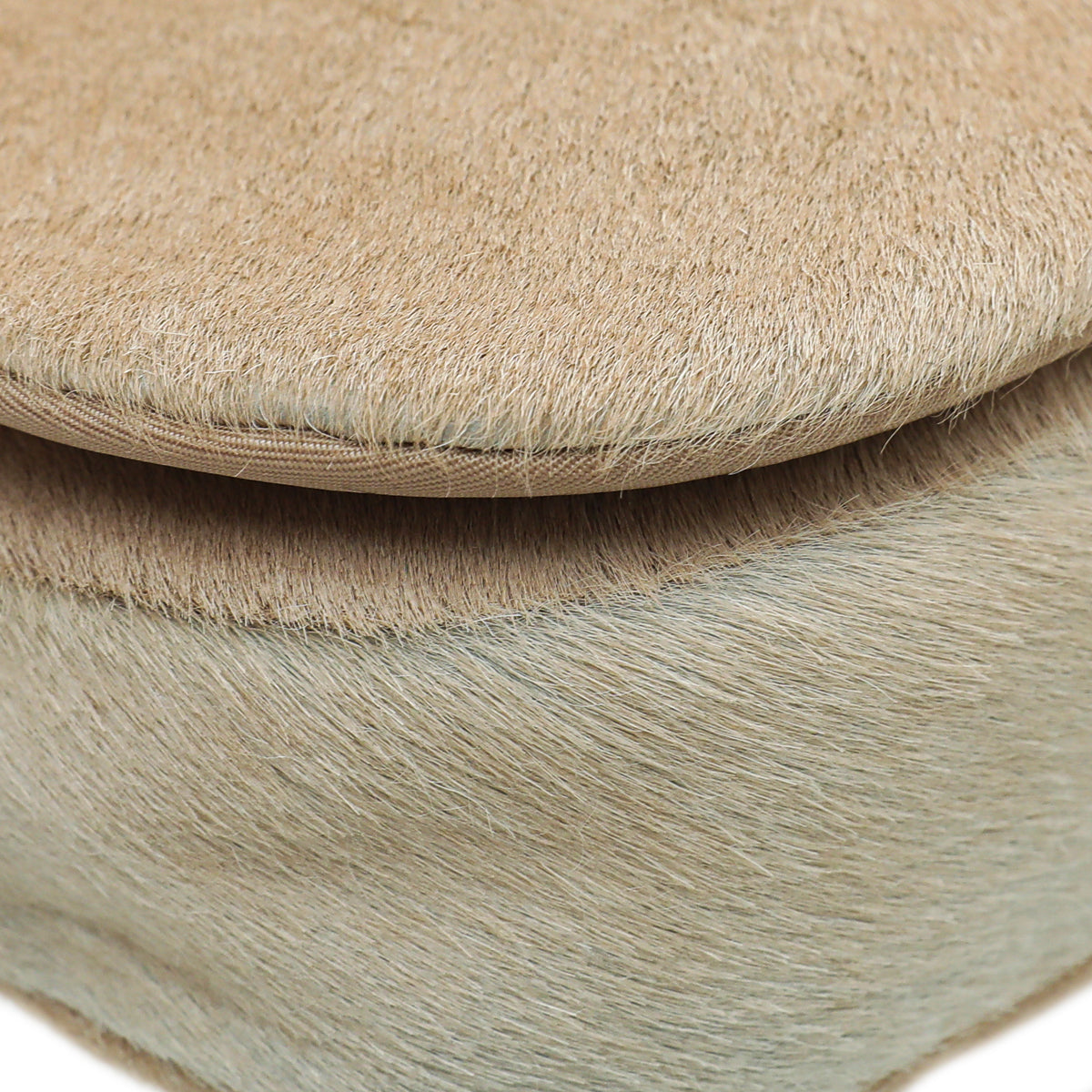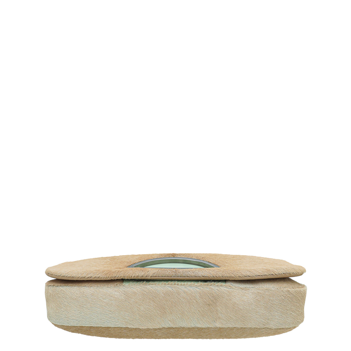 Material: Beige Calf Hair with Mint Patent Leather Trim