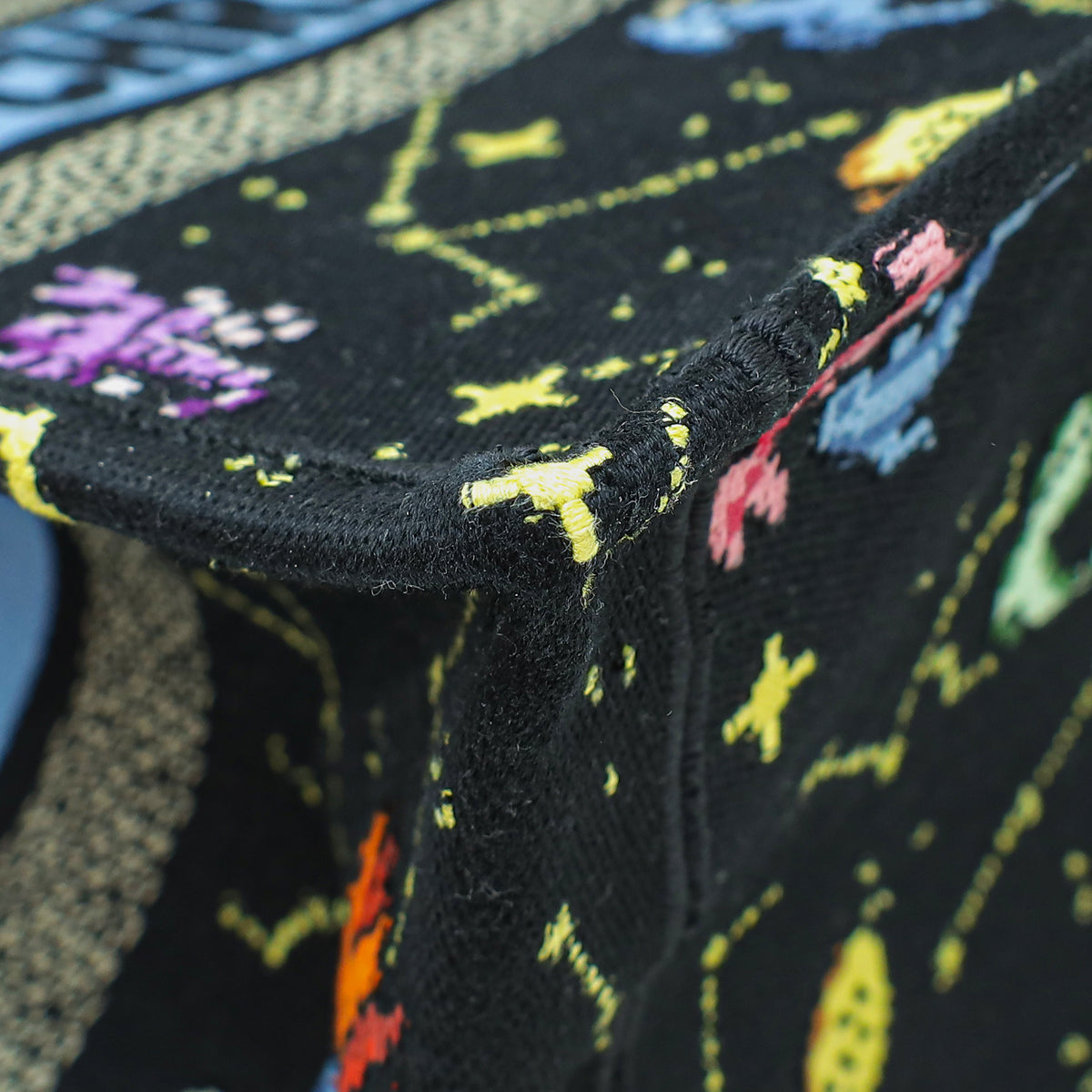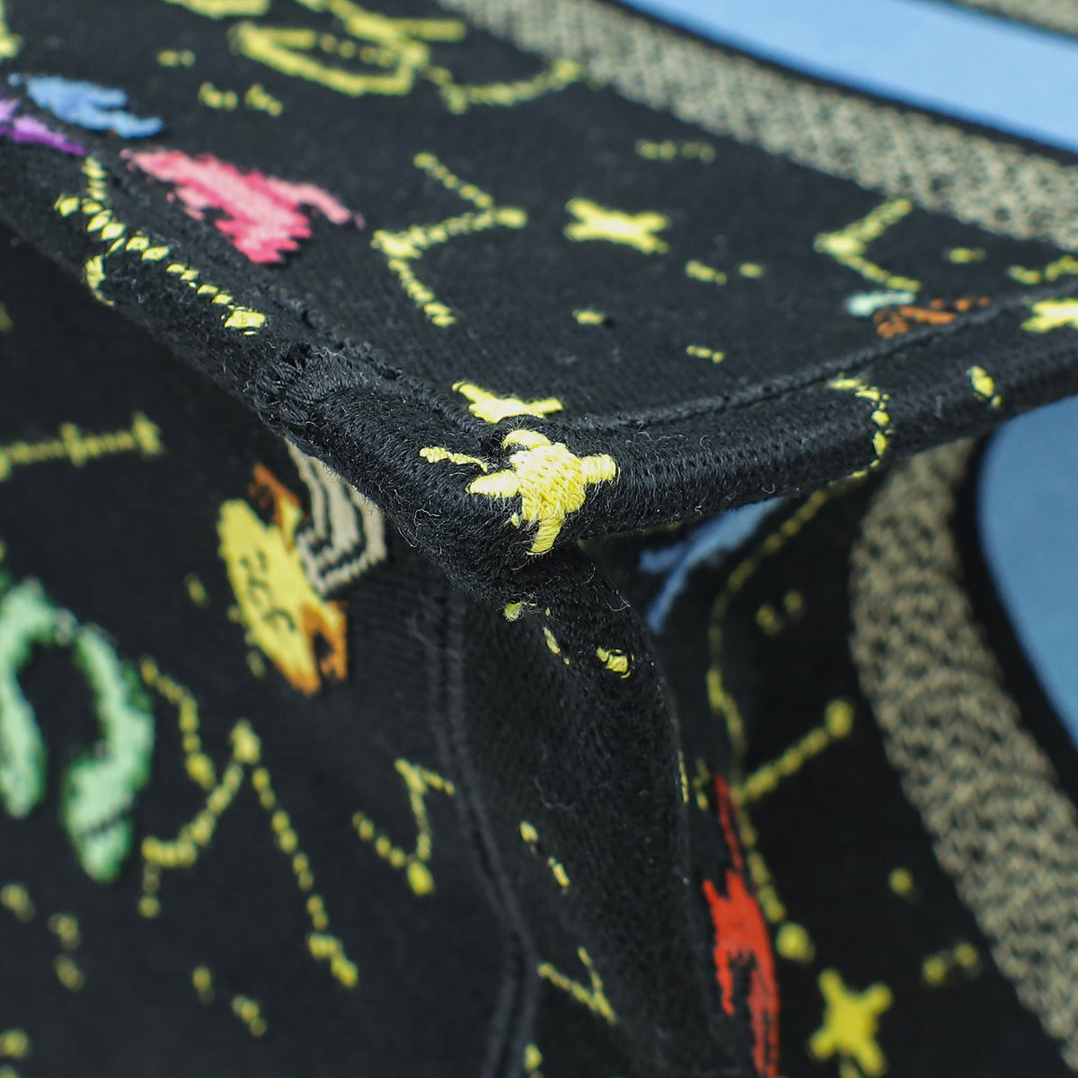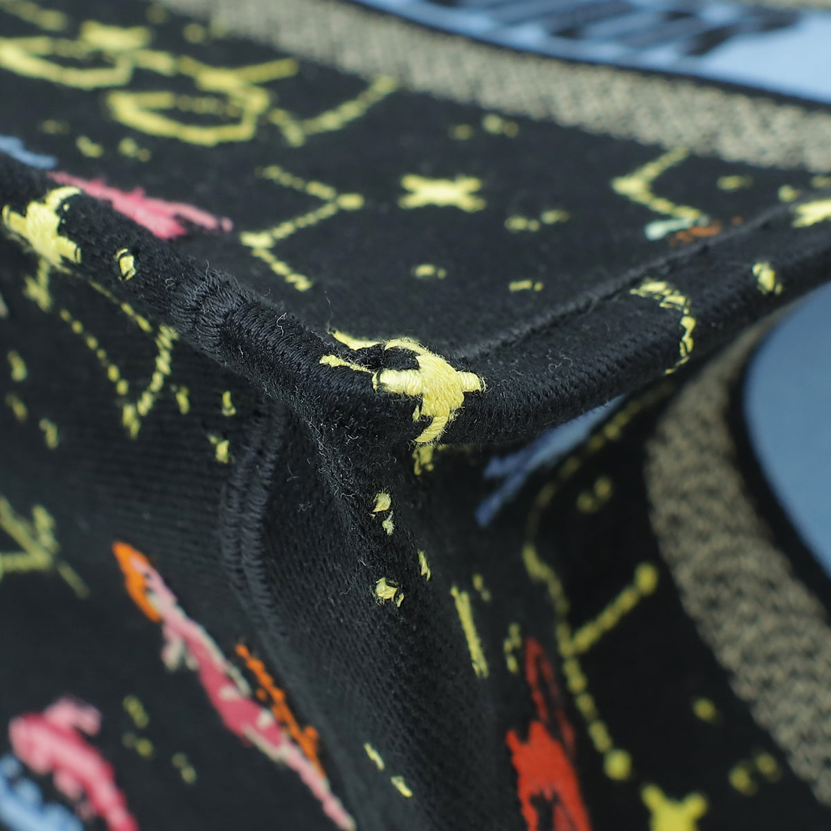 Christian Dior Black Multicolor Pixel Zodiac Embroidery Medium Book Tote Bag