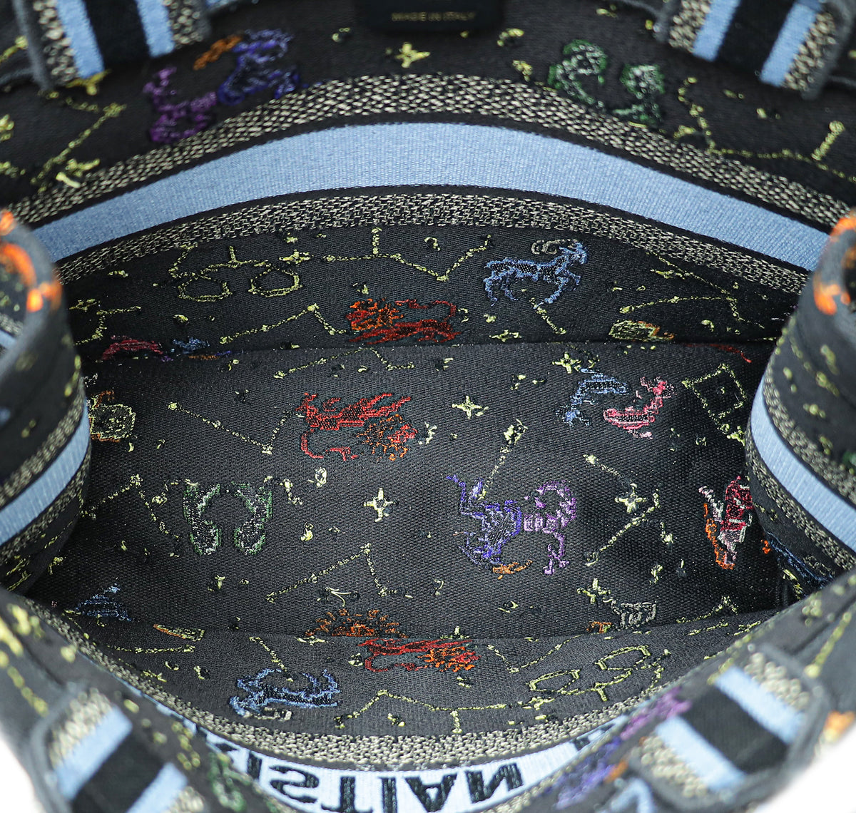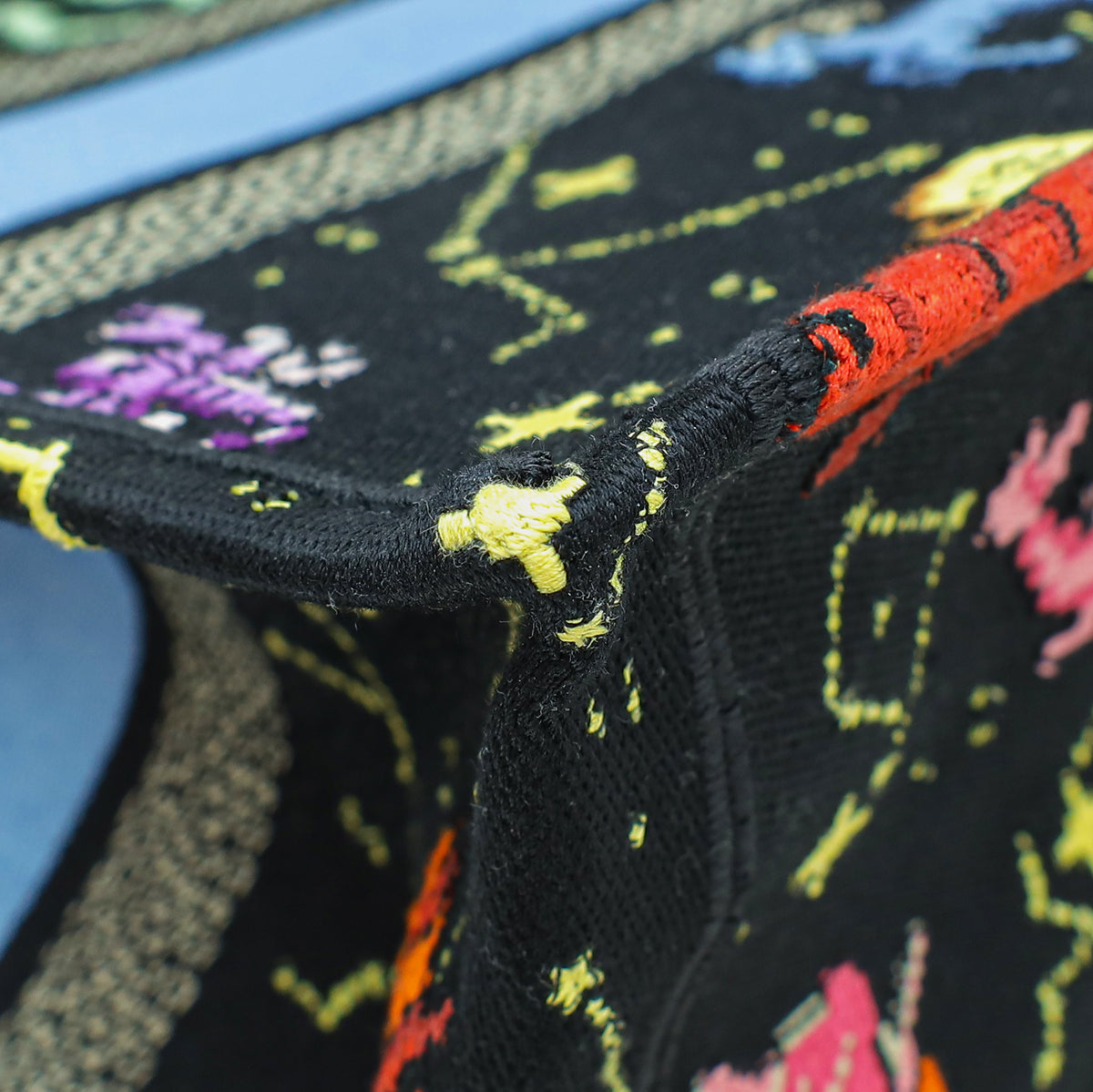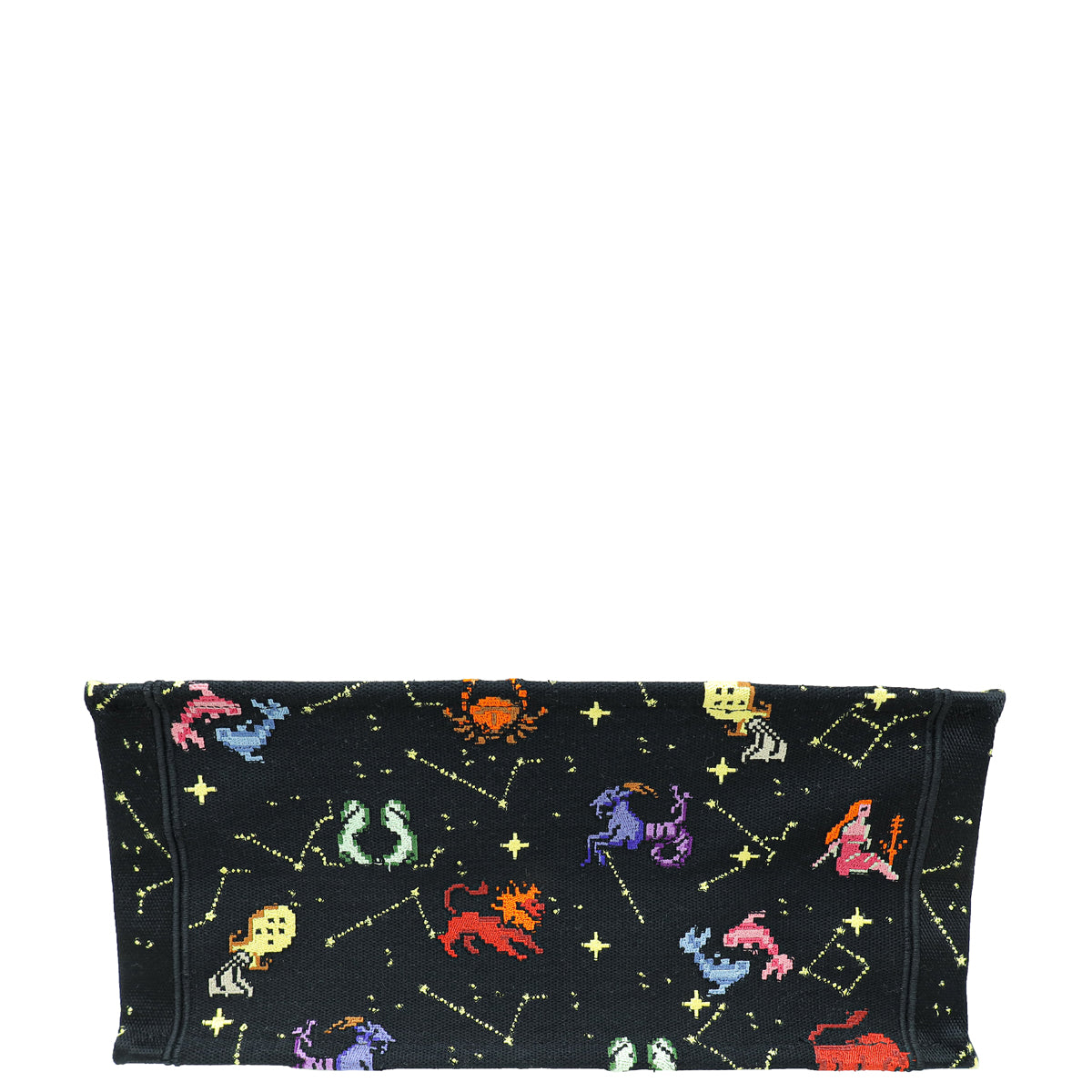 Christian Dior Black Multicolor Pixel Zodiac Embroidery Medium Book Tote Bag