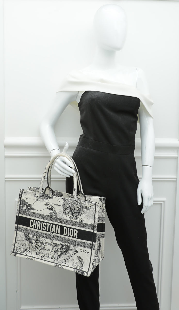 Christian Dior Latte Multicolor Zodiac Embroidered Medium Book Tote Bag