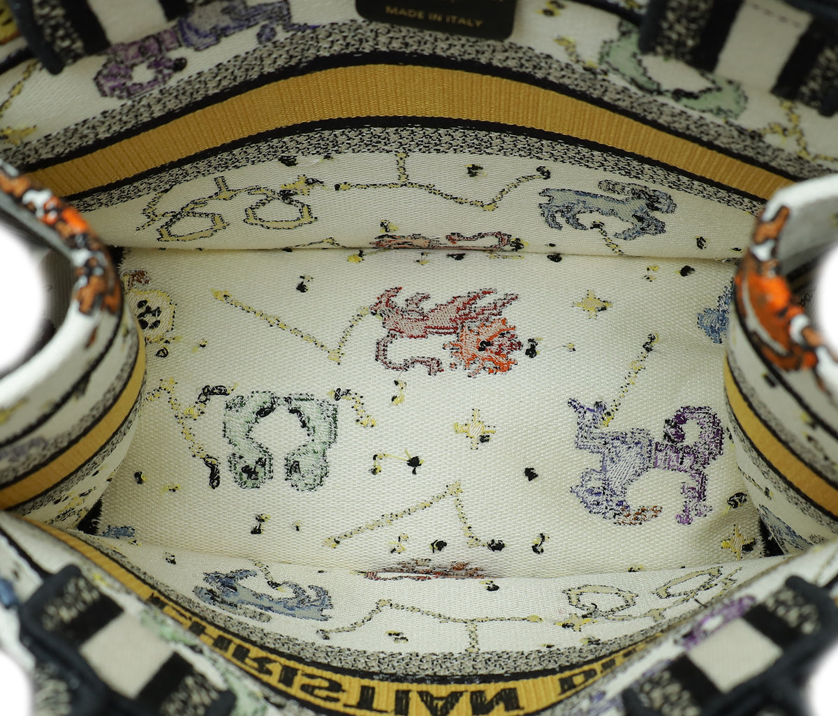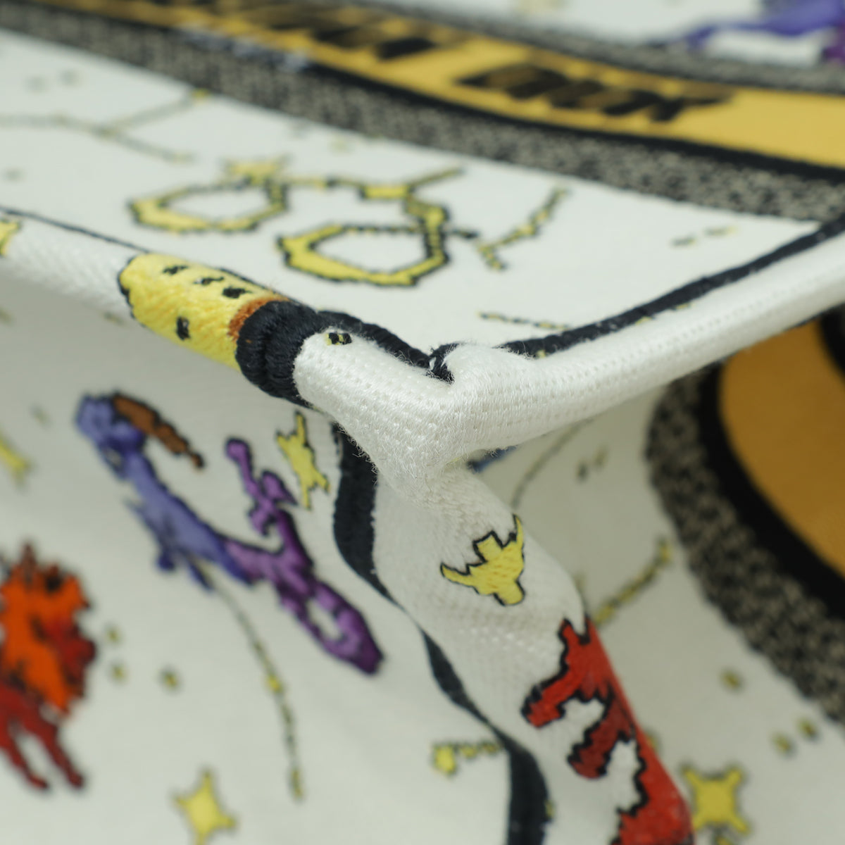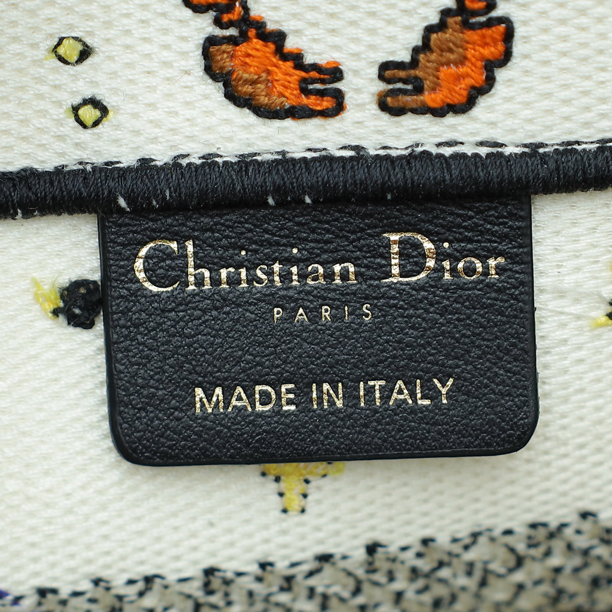 Christian Dior White Multicolor Pixel Zodiac Embroidery Small Book Tote Bag