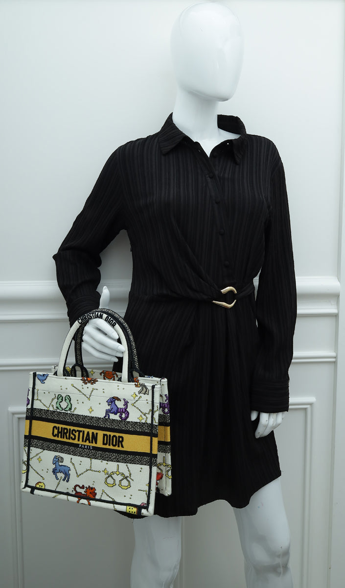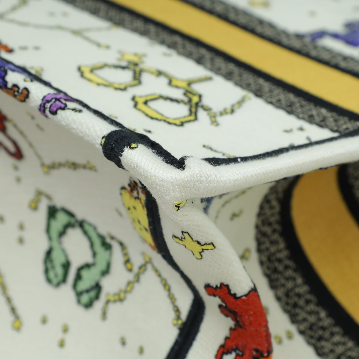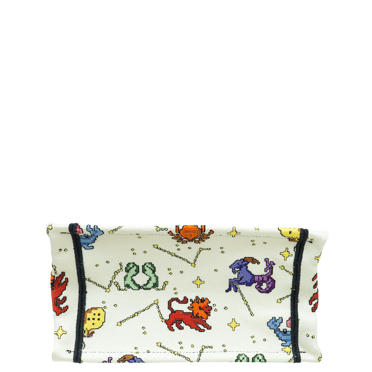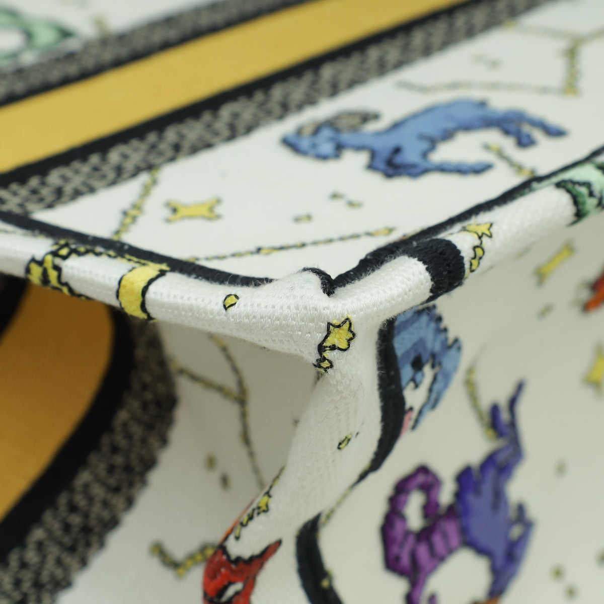 Christian Dior White Multicolor Pixel Zodiac Embroidery Small Book Tote Bag
