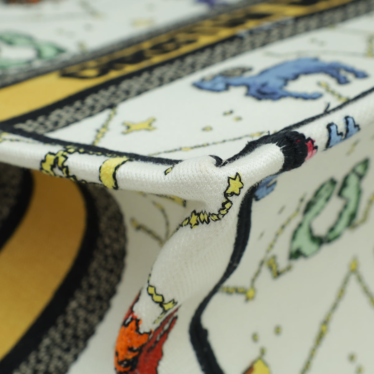 - Material: White Multicolor Embroidered Canvas with Zodiac Motif